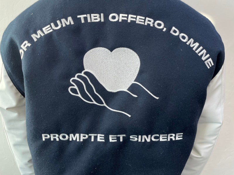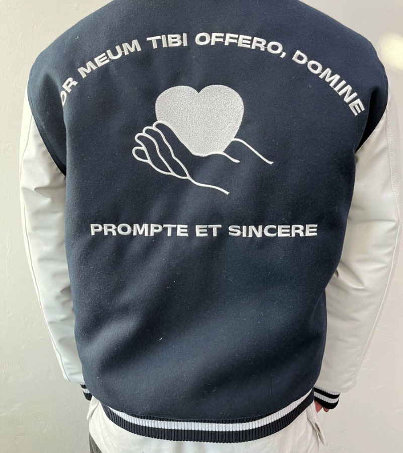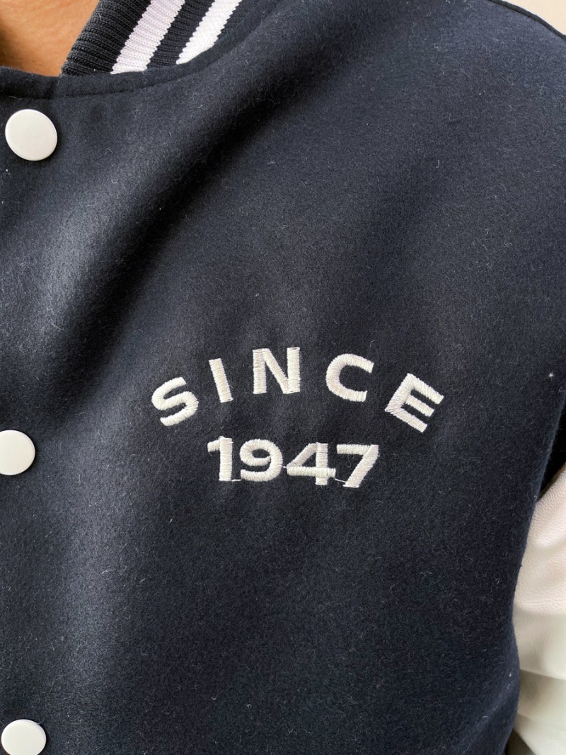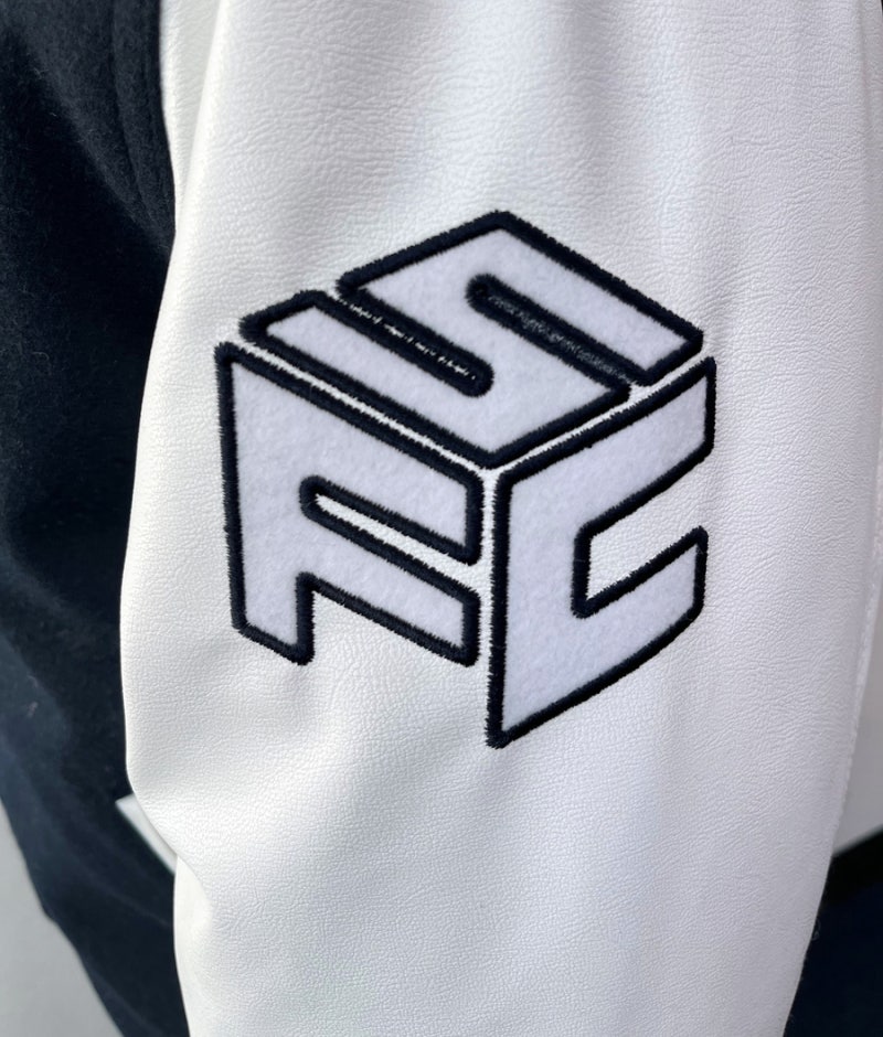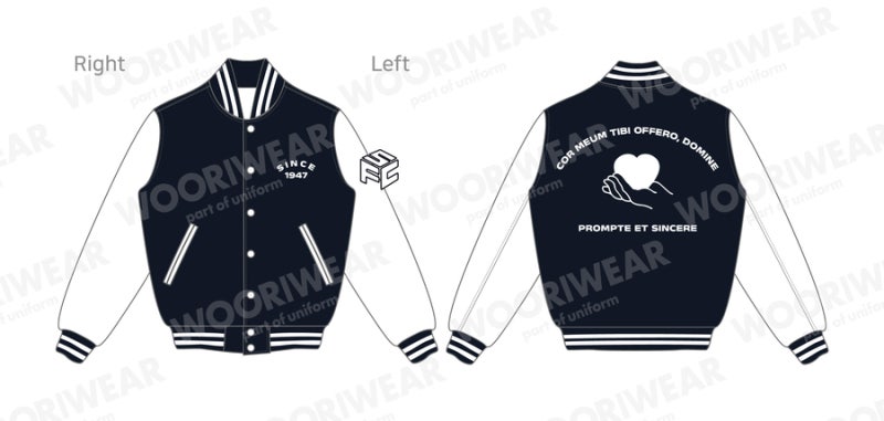 SFC에서는 하이미어 원단의 다크네이비 컬러와 화이트 인조 가죽 소매의 조화로 세련되고 강렬한 인상을 주며, 학교의 상징색을 감각적으로 표현했습니다. 또한 왼쪽 가슴, 왼쪽 소매, 등판에는 로고를 고급 자수로 새겨 넣어 특별함을 더했습니다.