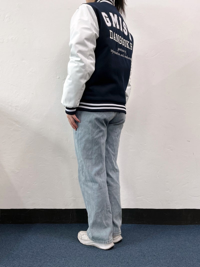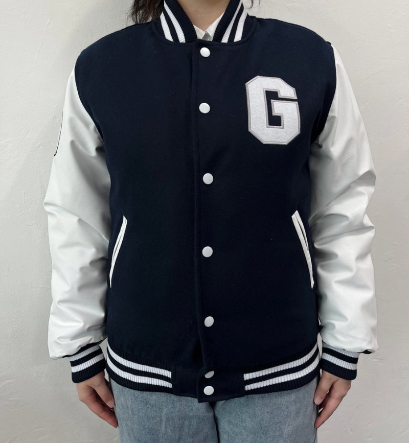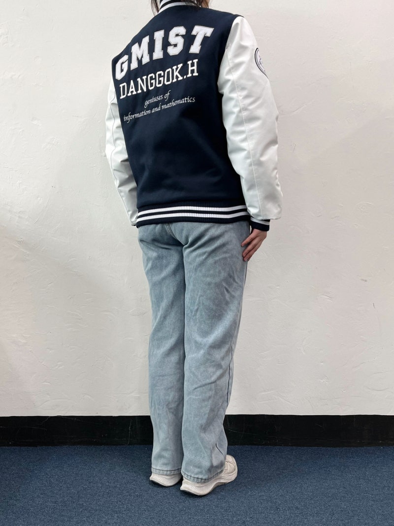 당곡고등학교에서는 하이미어 원단의 다크네이비 컬러와 화이트 인조 가죽 소매의 조화로 세련되고 강렬한 인상을 주며, 학교의 상징색을 감각적으로 표현했습니다. 또한 왼쪽 가슴, 오른쪽 소매, 등판에는 로고를 고급 자수로 새겨 넣어 특별함을 더했습니다.
