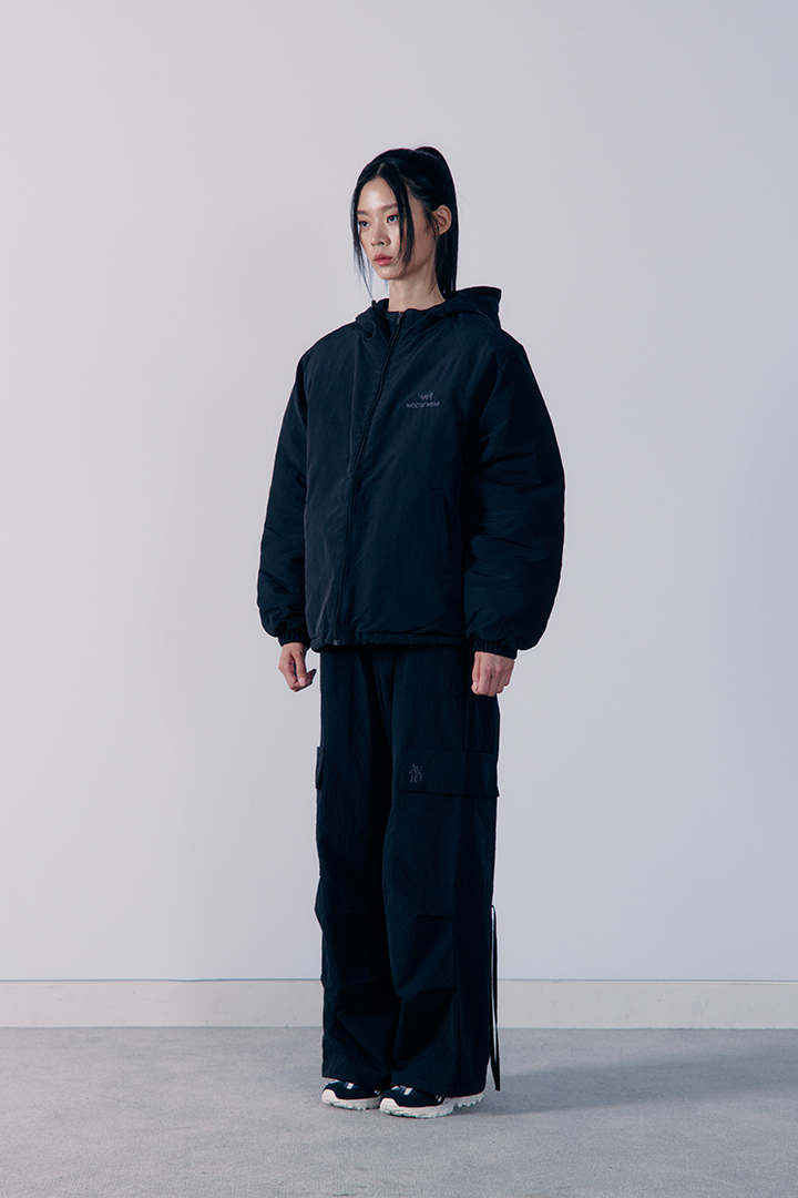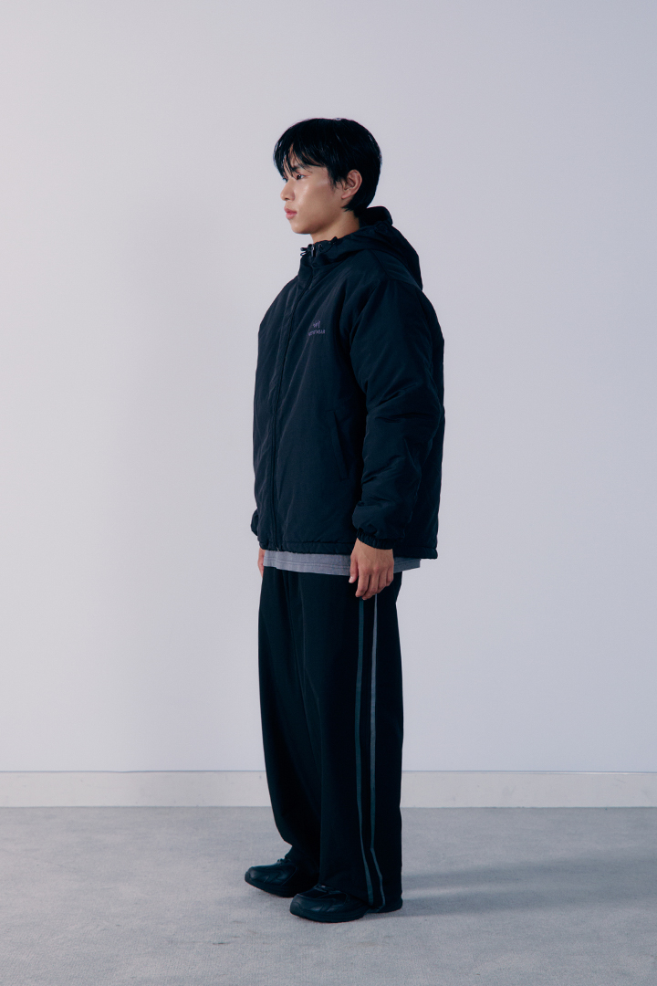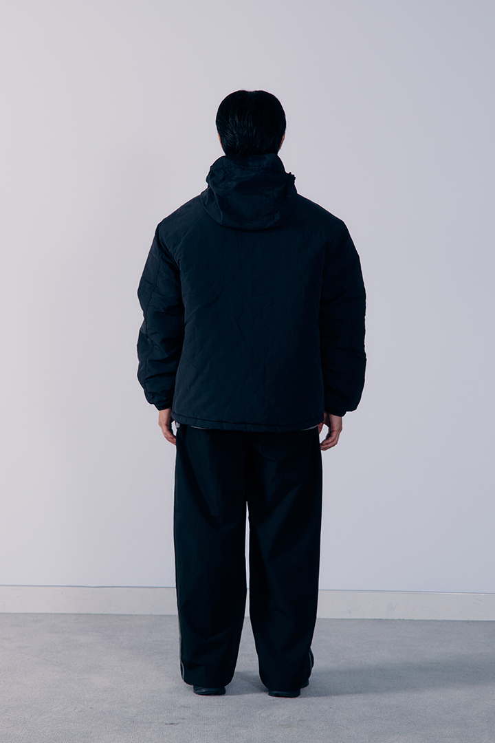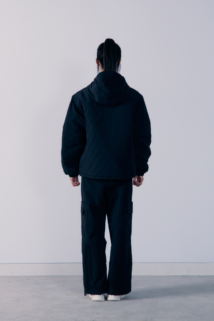 실용성과 편안함을 동시에인체공학적으로 설계된 하이넥 패턴과 머리를 감싸주고 보호해주는 후드 챙 디테일을 통해 실용성과 편안함을 동시에 챙겼습니다.