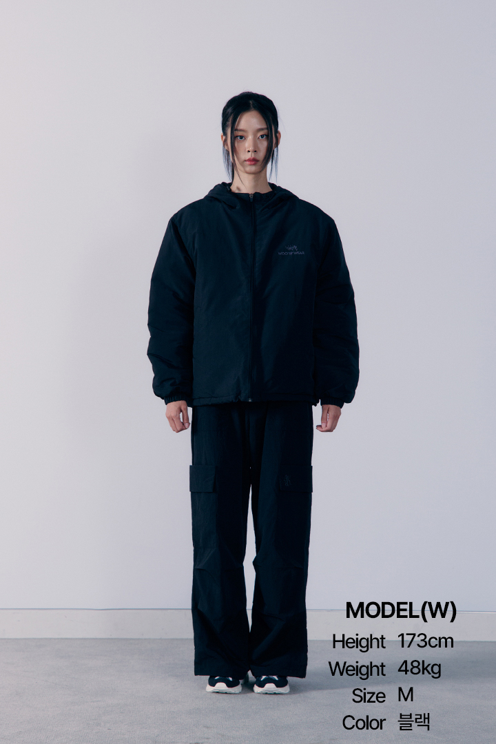 아웃도어 스타일과 보온성을 모두 갖춘 우리웨어 윈드쉘 패딩입니다.
