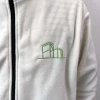 한민고등학교에서는 화이트아이보리 컬러로 선택하였으며, 왼쪽 가슴과 오른쪽 소매, 등판에 자수 로고 작업이 들어가 고급스러운 디테일을 더했습니다.