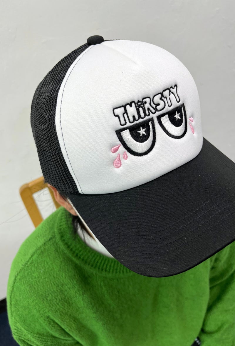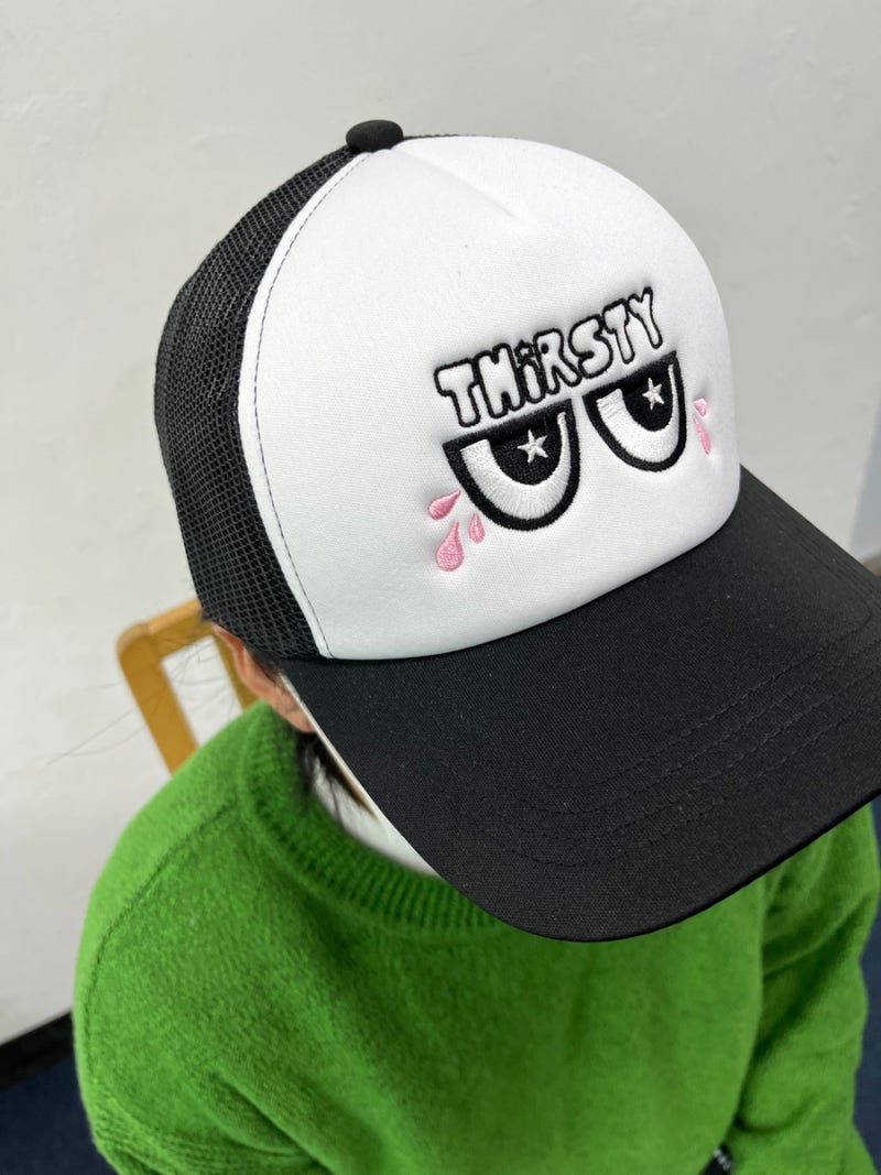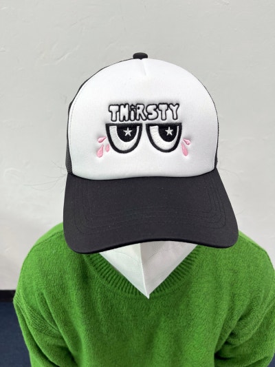이번 thirsty의 제작에서는 흰색/검정 색상을 선택하여, 전면부에 자수 기법으로 로고를 새겨 브랜드의 감성을 담았습니다.