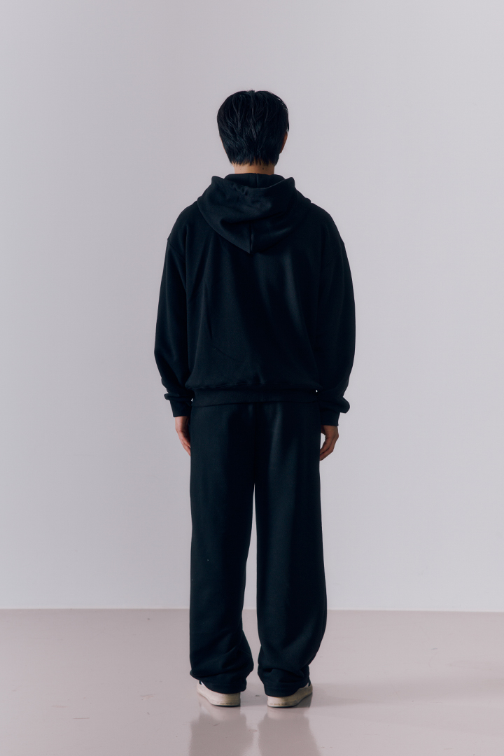 후드는 여유 있게 제작이 되어 다양한 후드핏 연출이 가능하고, 고급스러운 아일렛과 스트링 팁 처리로 완성도를 높였습니다.