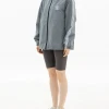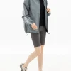 어깨선이 살짝 내려와 루즈한 실루엣이 연출되었고, 팔 길이도 손등을 살짝 덮는 정도로 길어졌어요.