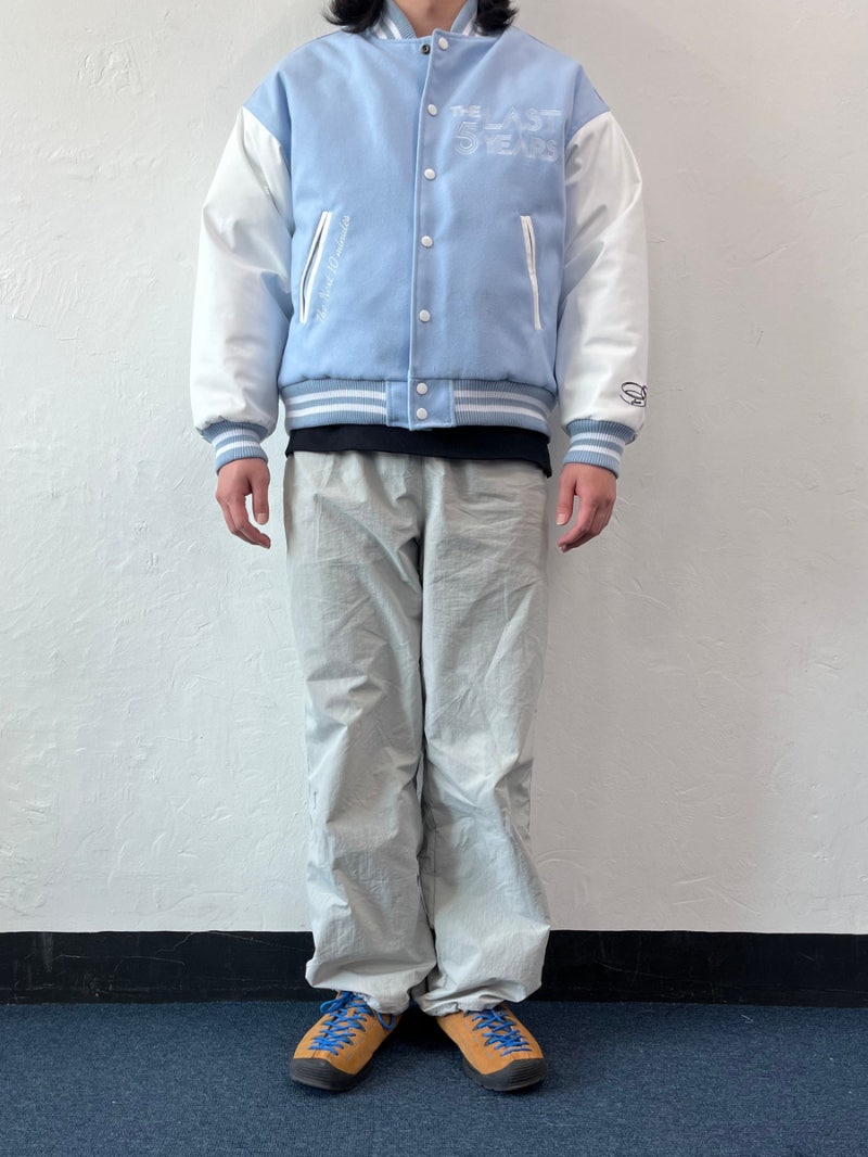 자연스럽게 드롭되는 숄더 라인과 여유 있는 핏은 1990년대 특유의 바시티룩 무드를 연상시키며,
