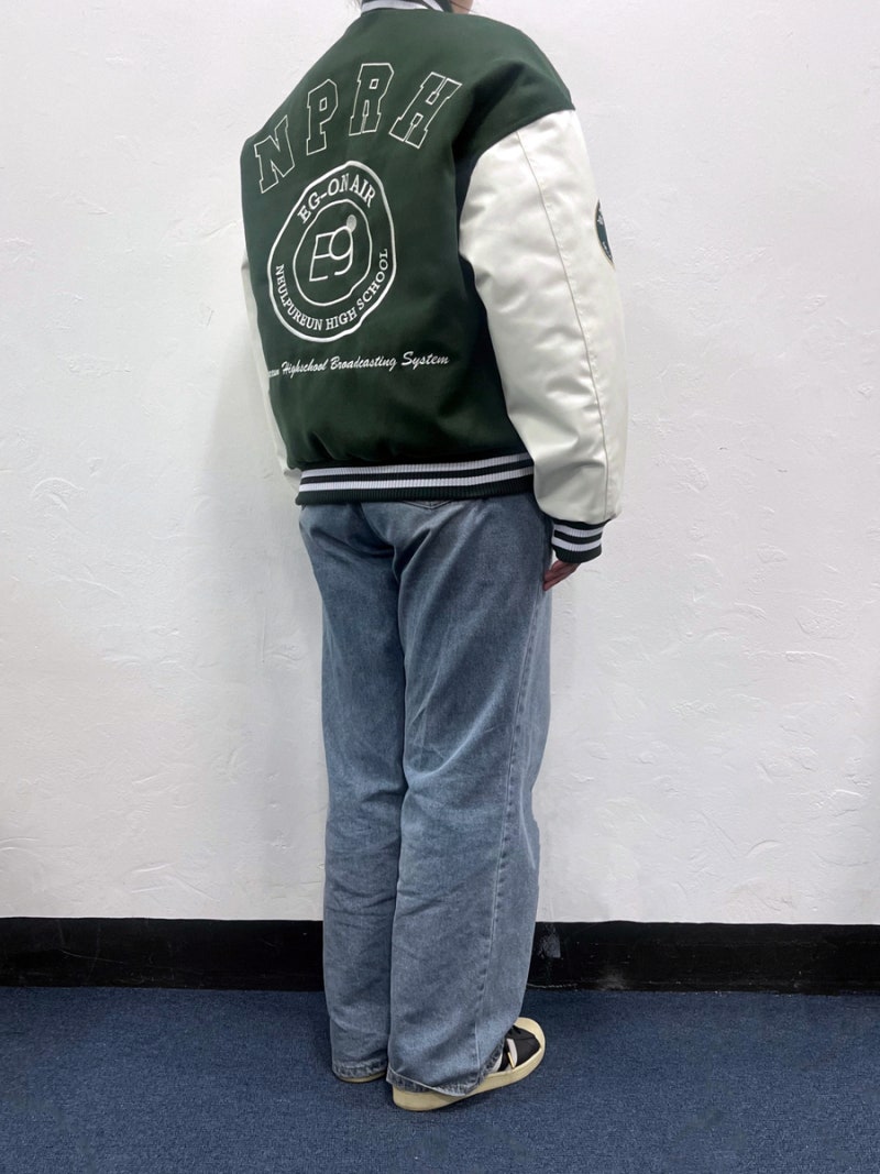 일반적인 야구점퍼와 차별화된 루즈한 실루엣과 적당히 경쾌한 기장감이 특징입니다.