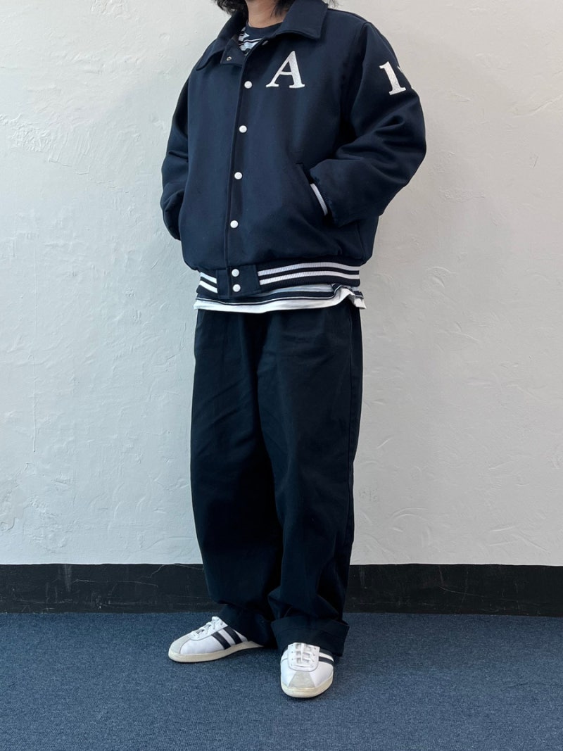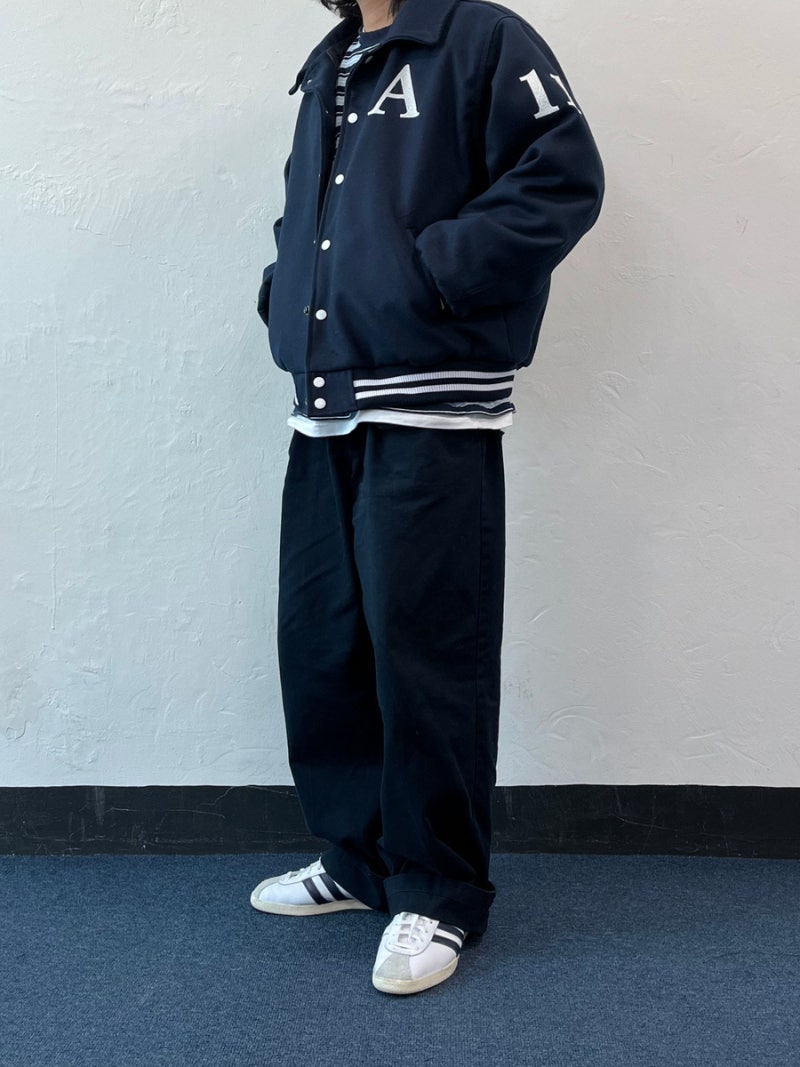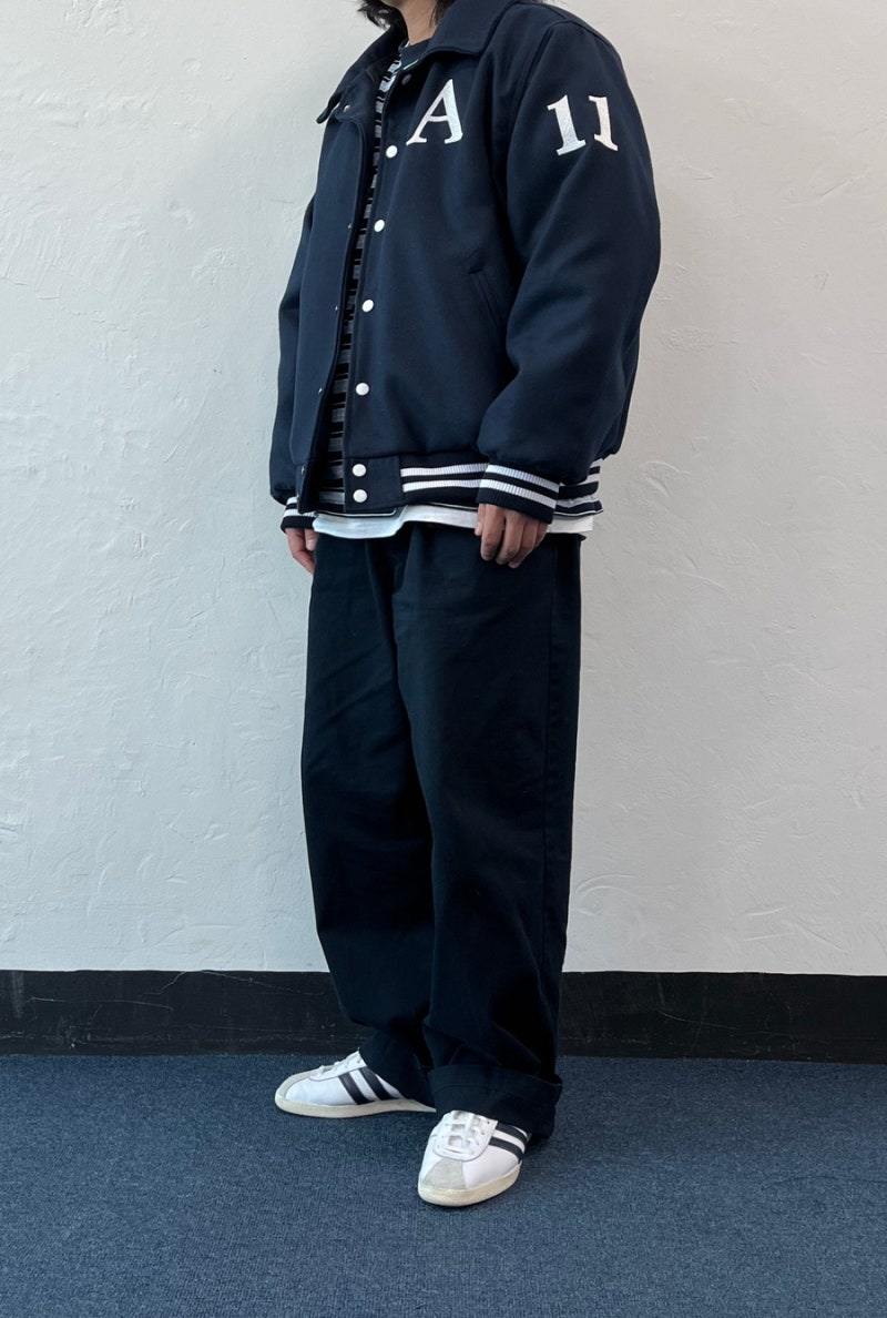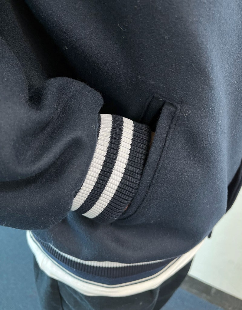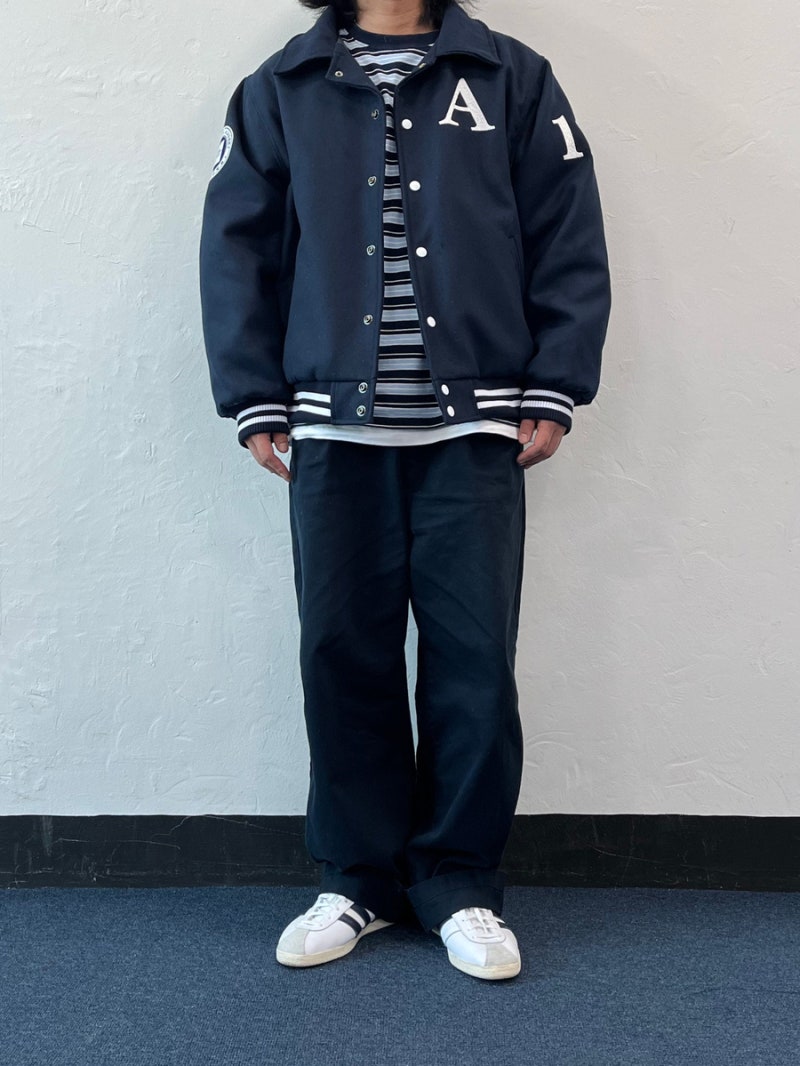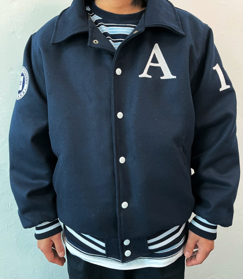 여유 있는 실루엣으로 편안한 착용감을 선사하며, 특히 유니크한 카라 디테일이 더해져 일반적인 스타디움 자켓에서는 볼 수 없는 고급스러움을 느낄 수 있습니다.