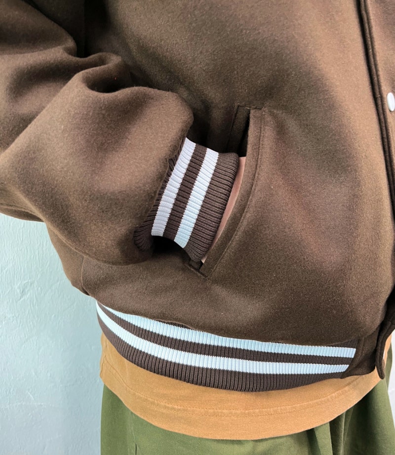 우리웨어만의 차별화된 퀄리티로 완성된 하이미어 바시티 자켓, 직접 경험해 보세요!