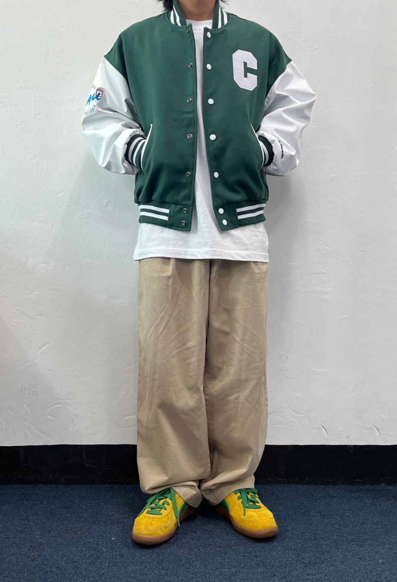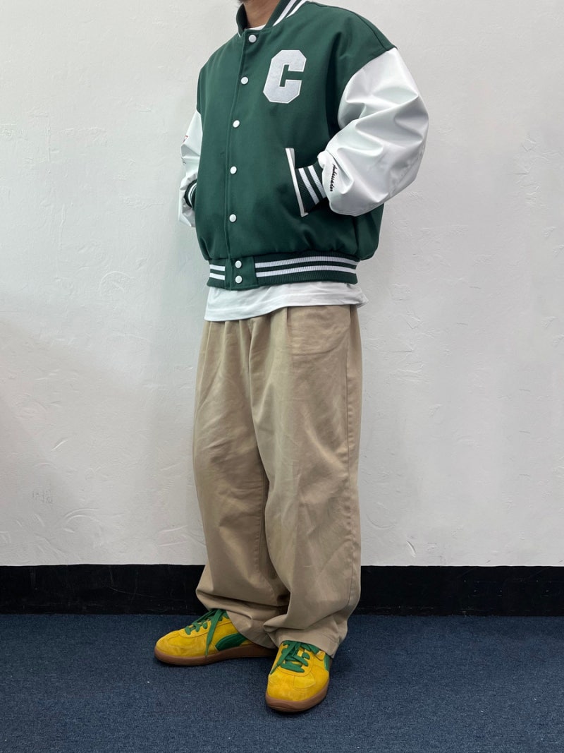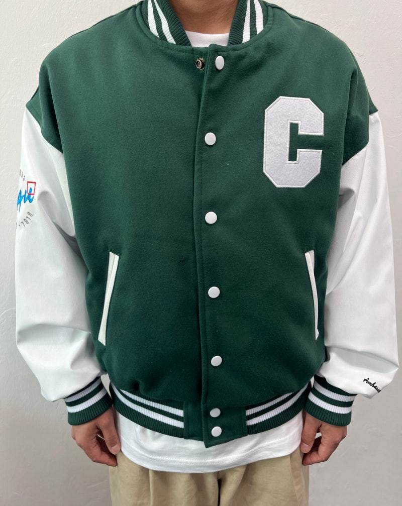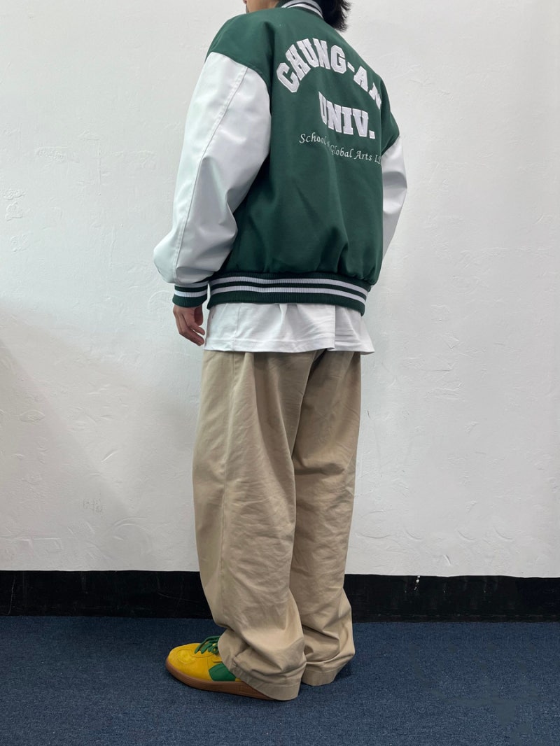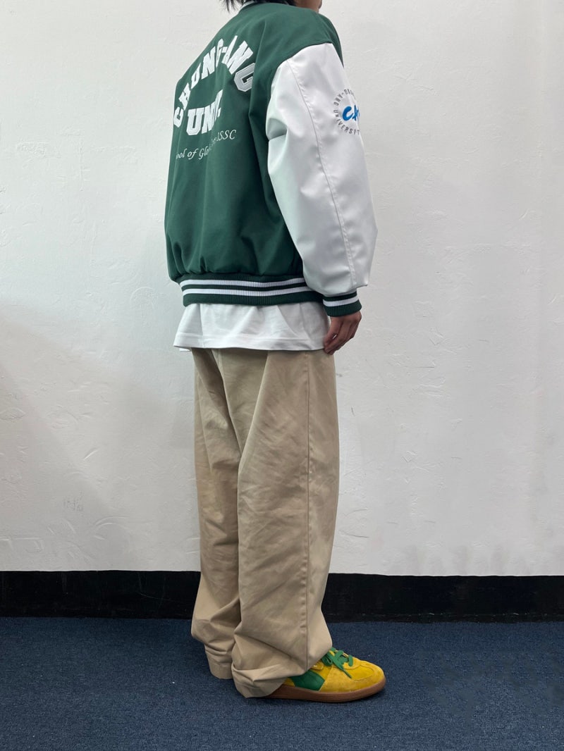 90년대 바시티룩을 모티브로 우리웨어만의 감성을 담아 재해석한 이 제품은, 일반적인 야구점퍼와 차별화된 루즈한 실루엣과 적당히 경쾌한 기장감이 특징입니다. 자연스럽게 드롭되는 숄더 라인과 여유 있는 핏은 1990년대 특유의 바시티룩 무드를 연상시키며, 다양한 스타일로 연출하기 좋은 아이템입니다.