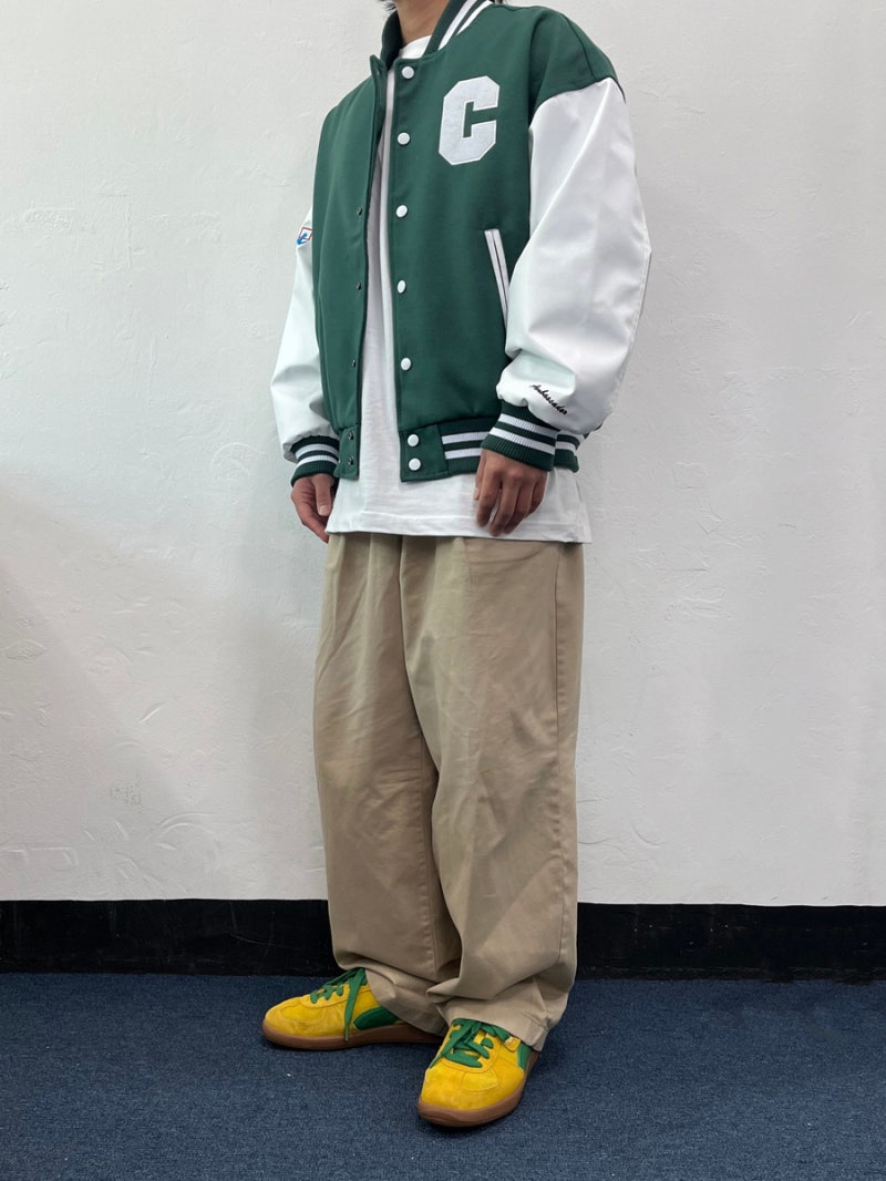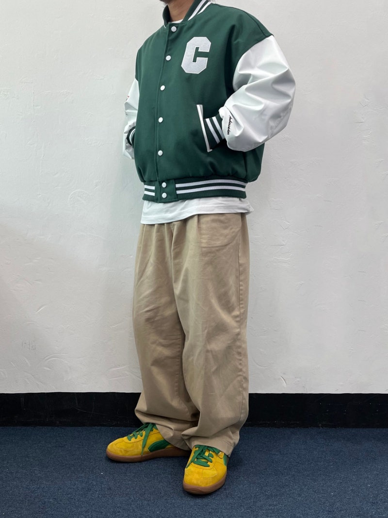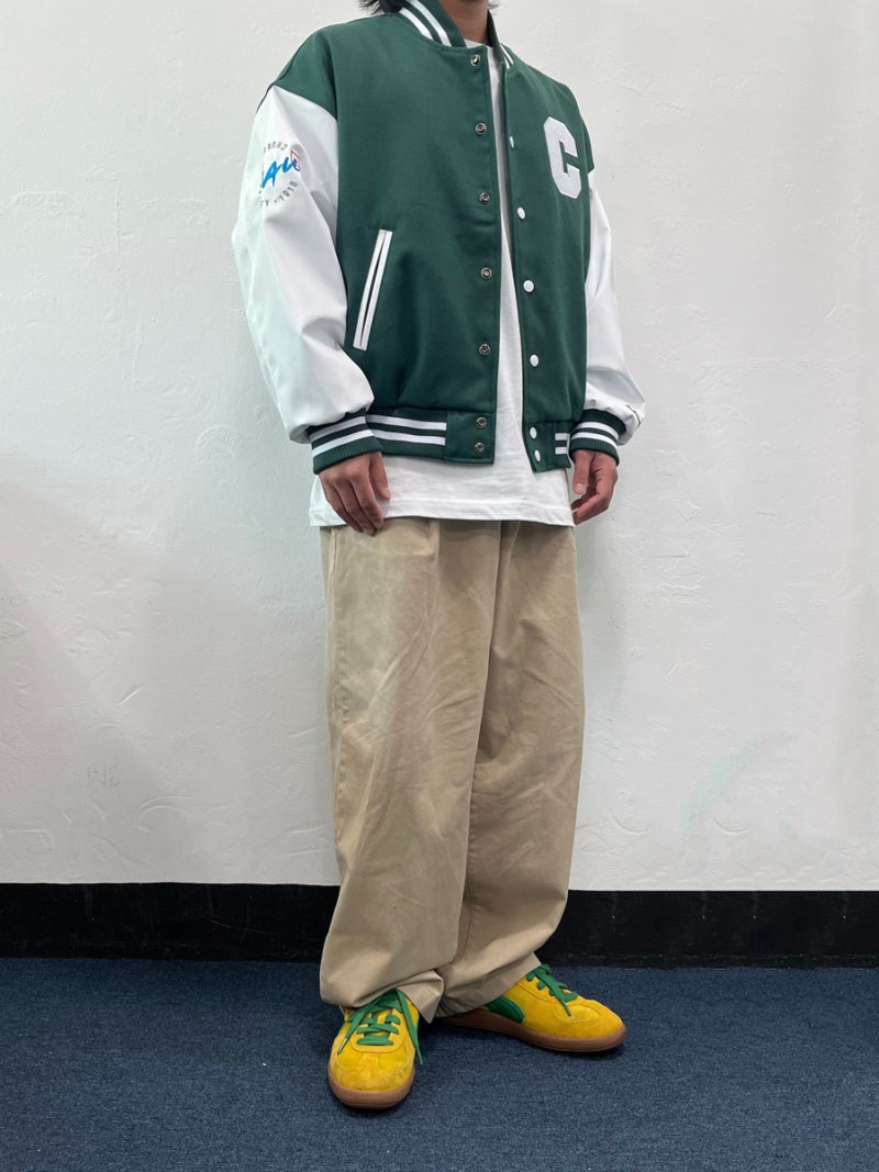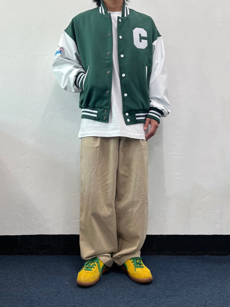 90년대 바시티룩을 모티브로 우리웨어만의 감성을 담아 재해석한 이 제품은, 일반적인 야구점퍼와 차별화된 루즈한 실루엣과 적당히 경쾌한 기장감이 특징입니다. 자연스럽게 드롭되는 숄더 라인과 여유 있는 핏은 1990년대 특유의 바시티룩 무드를 연상시키며, 다양한 스타일로 연출하기 좋은 아이템입니다.