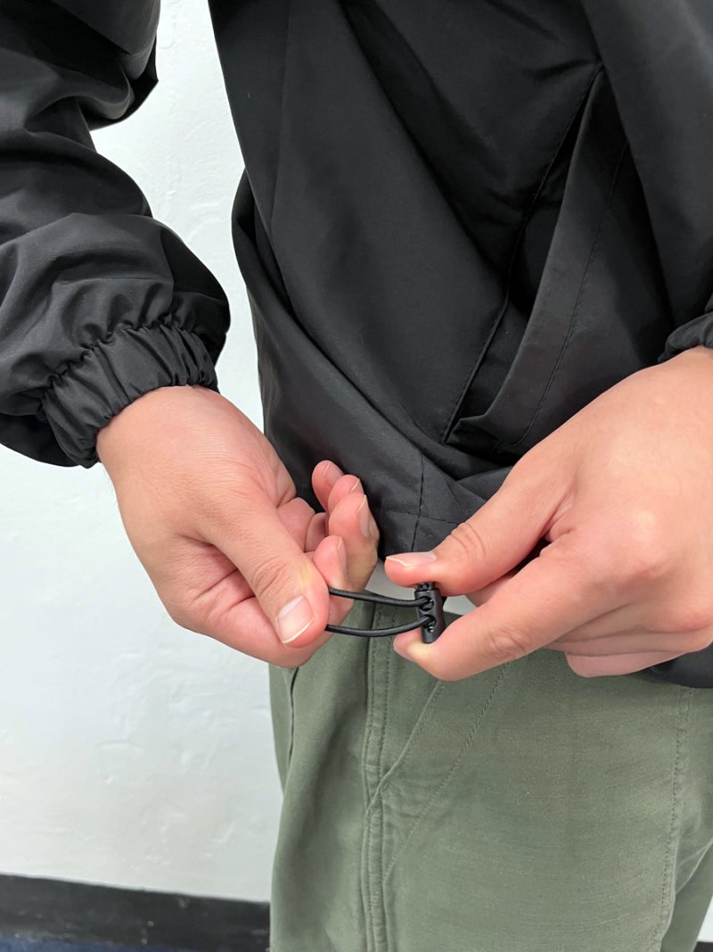 또한, 후드와 밑단에는 스트링을 적용하여 체형에 맞게 핏을 조절할 수 있으며, 후드 챙 디테일을 더해 바람을 효과적으로 차단해줍니다.