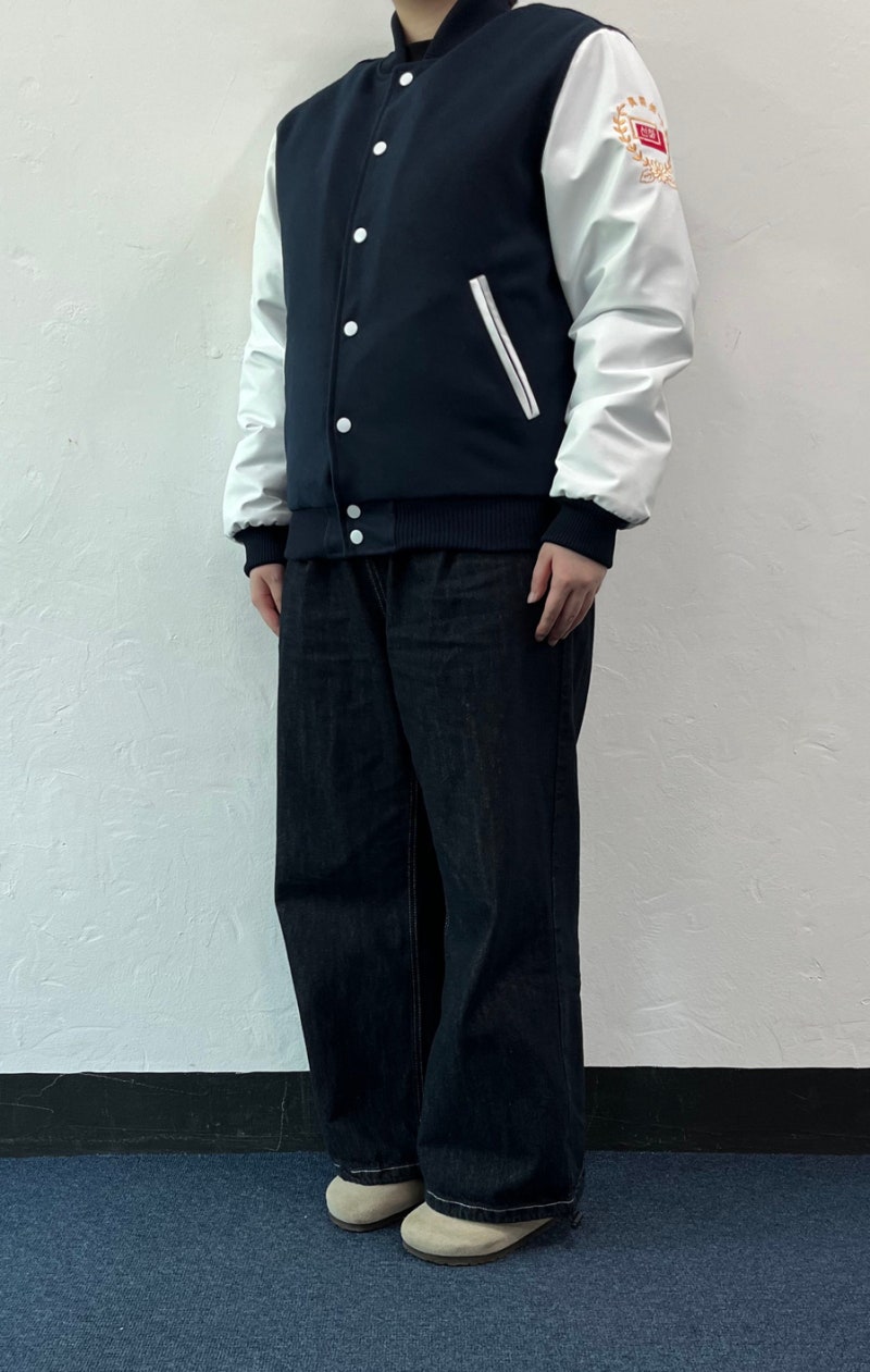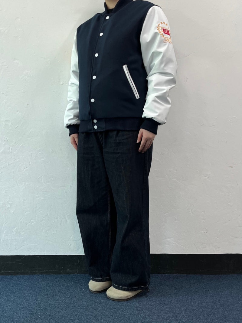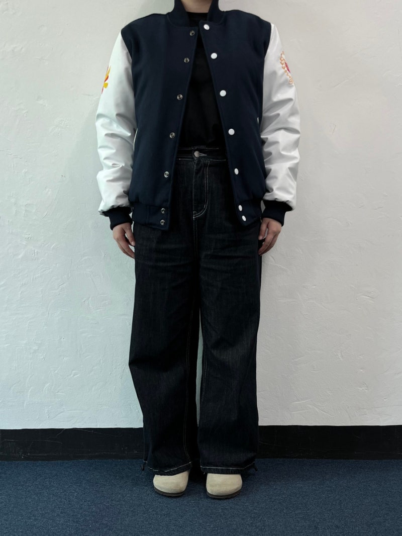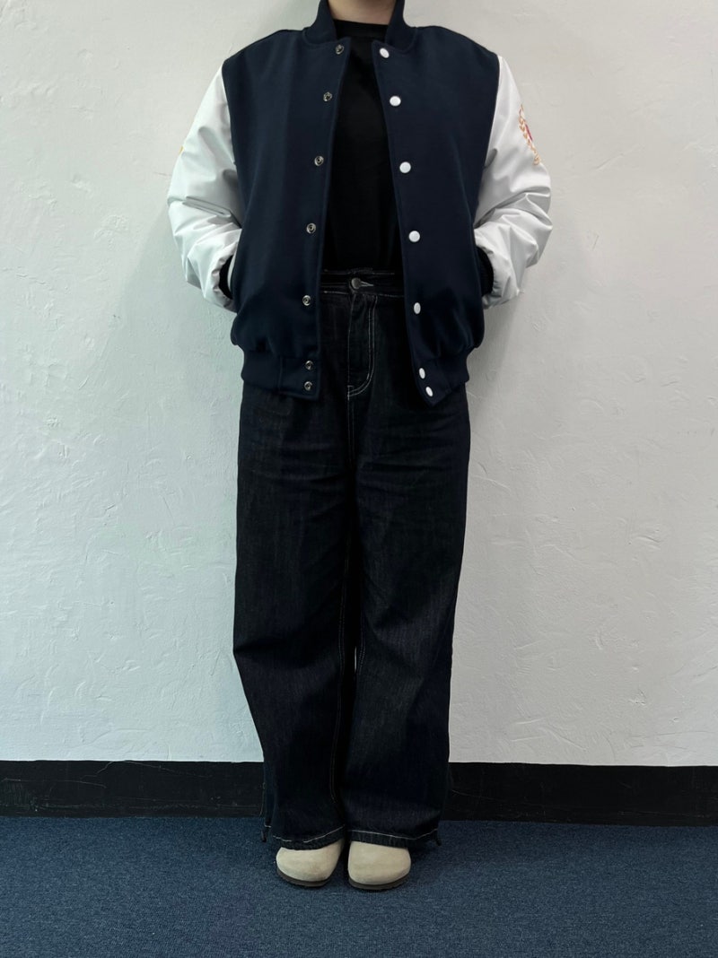 간단하게 티셔츠에 이 야구점퍼만 걸쳐도 스타일리시한 느낌을 줍니다.