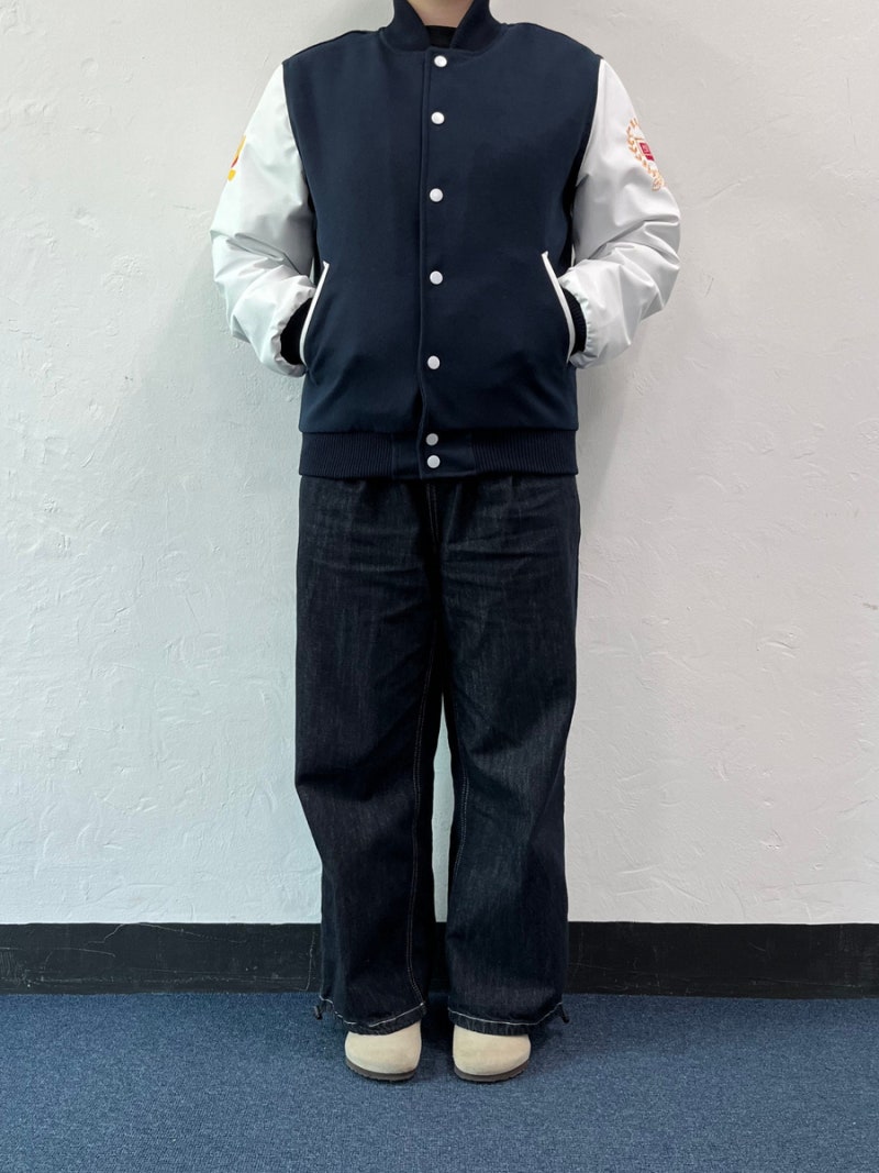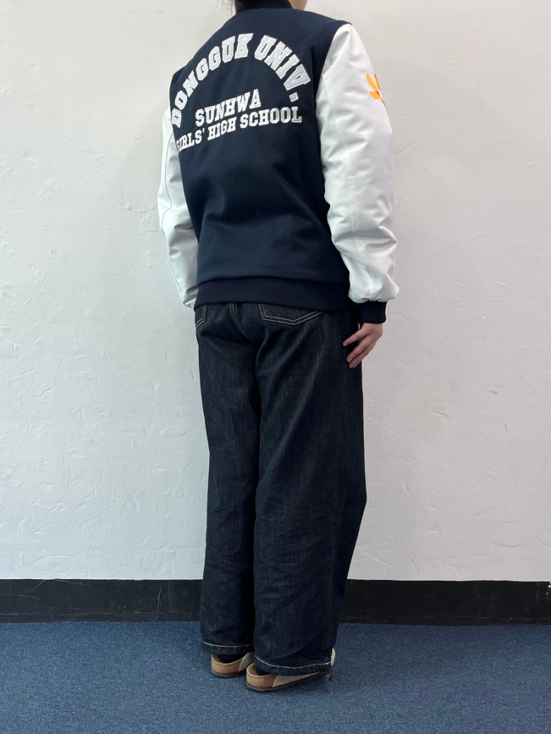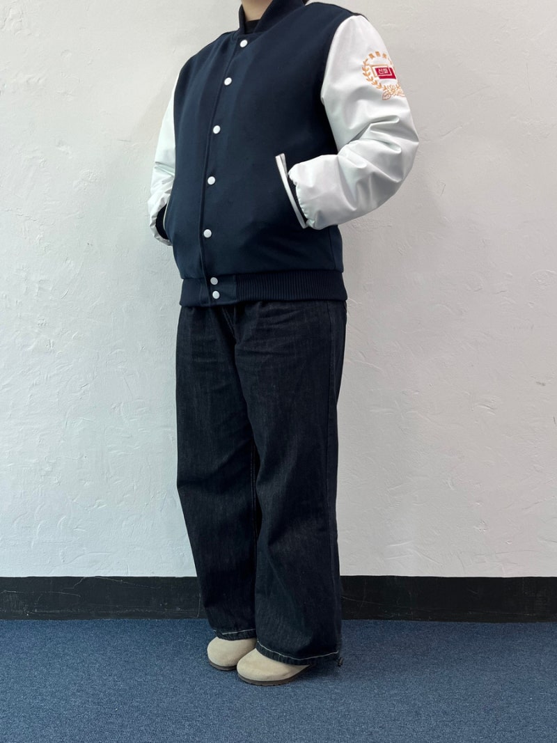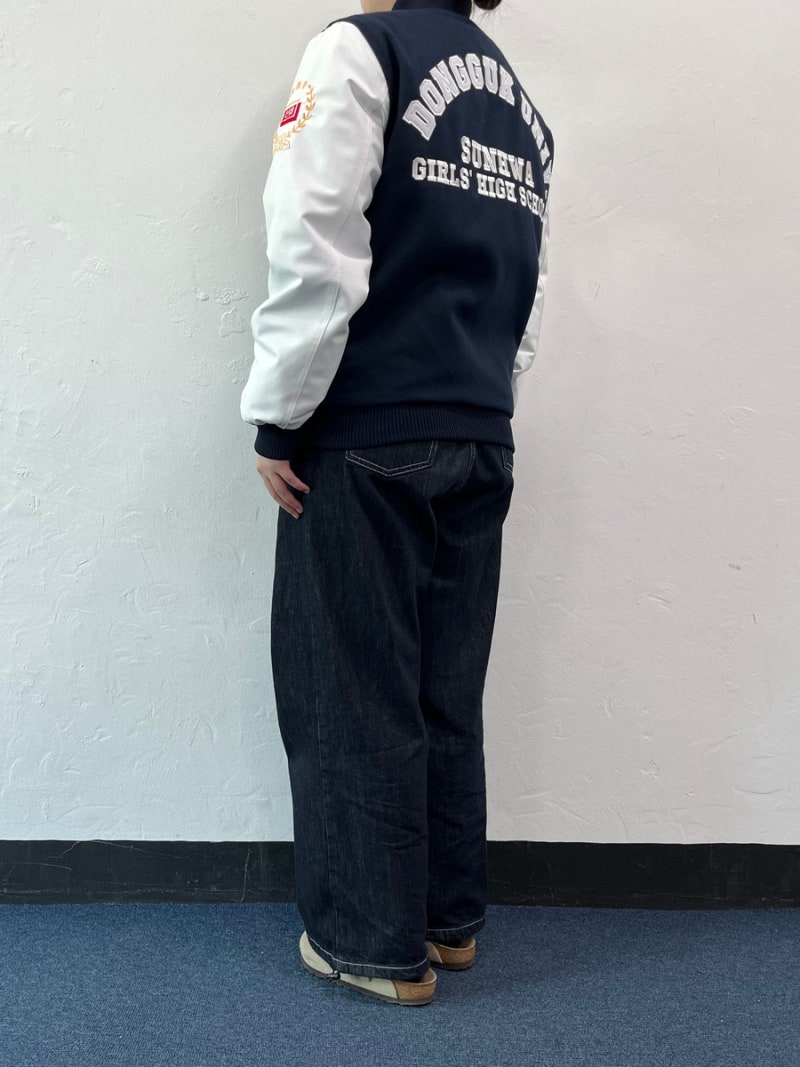 간단하게 티셔츠에 이 야구점퍼만 걸쳐도 스타일리시한 느낌을 줍니다.