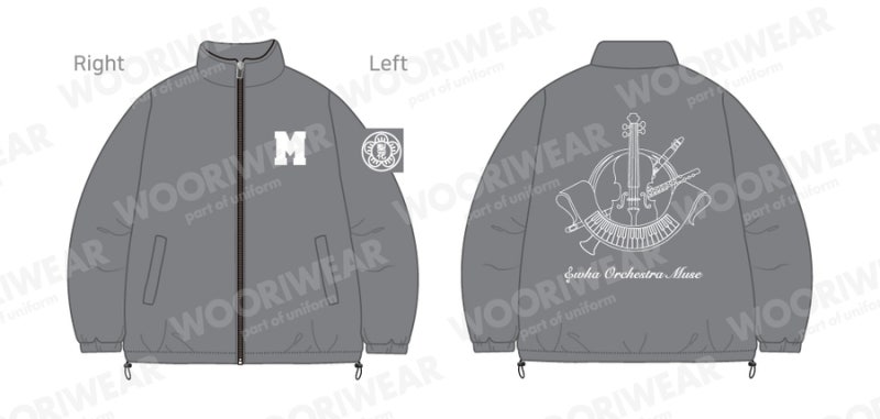 이번에 이화여자고등학교에서는 애쉬그레이 컬러를 선택했으며, 왼쪽 가슴, 왼쪽 소매, 등판의 자수 로고 작업을 통해 고급스럽고 완성도 높은 디자인을 완성했습니다.
