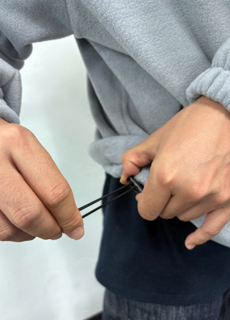 밑단 양쪽에는 스토퍼와 스트링이 있어 체형에 맞게 사이즈 조절이 가능합니다.