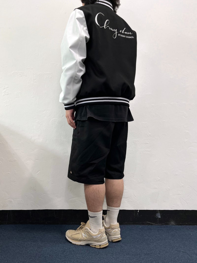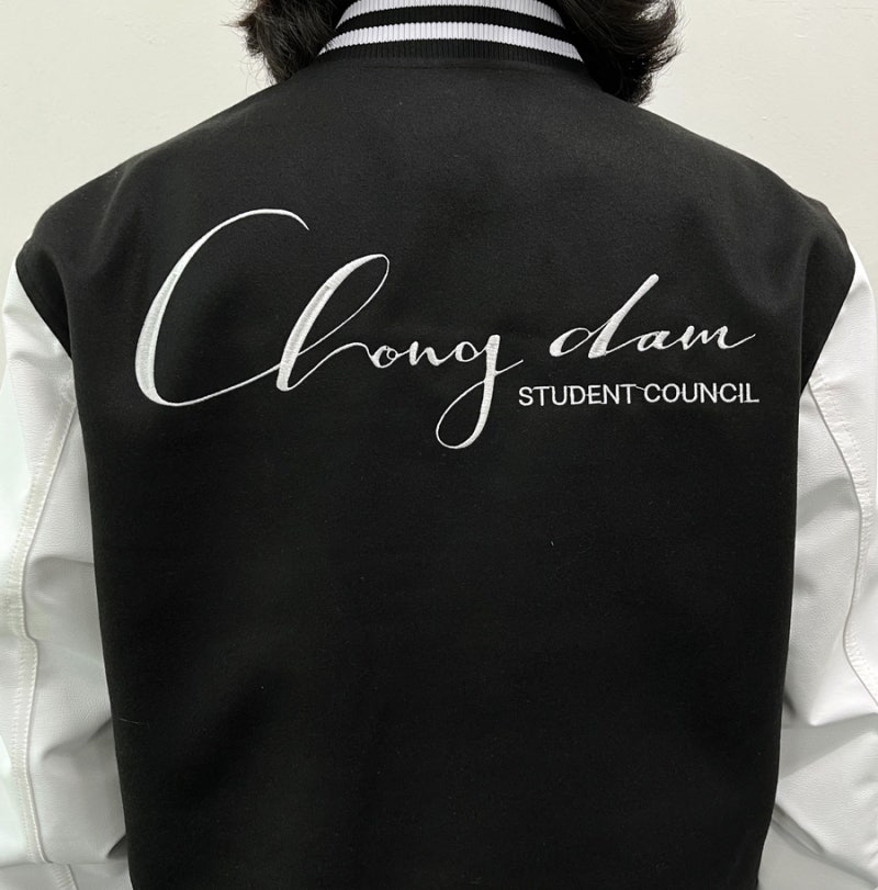 청담고등학교에서는 블랙 컬러의 하이미어 원단에 화이트 인조 가죽 소매를 조합해, 깔끔하고 세련된 컬러 밸런스를 완성했습니다.