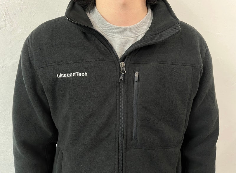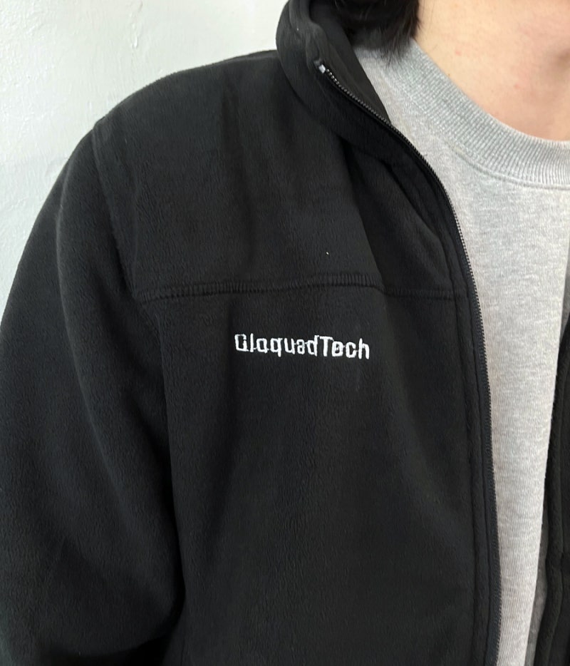 글로쿼드텍에서는 블랙 컬러를 선택하고, 오른쪽 가슴에 자수 방식으로 로고를 새겨