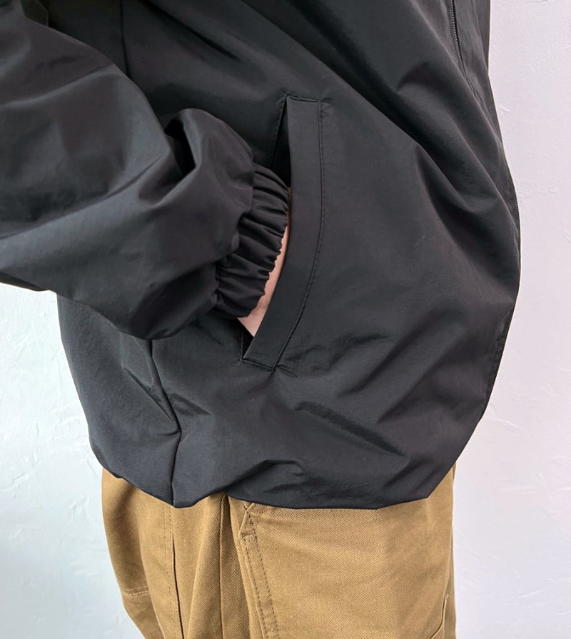 하이넥 디자인으로 목 부위를 효과적으로 보호하며, 소매 밴딩 처리로 외부 바람의 유입을 차단해 보온성을 높였습니다. 메인 지퍼는 세미 오토탭 슬라이더 지퍼를 적용해 부드러운 개폐가 가능하며, 실용적인 안주머니가 있어 작은 소지품을 보관하기에도 용이합니다. 또한, 밑단에는 스트링을 적용하여 개인의 체형에 맞게 핏을 조절할 수 있습니다.