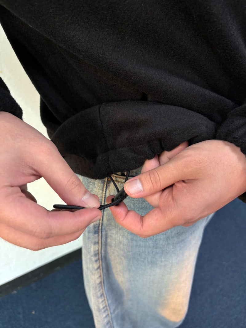 밑단 양쪽에는 스토퍼와 스트링이 있어 체형에 맞게 사이즈 조절이 가능합니다.