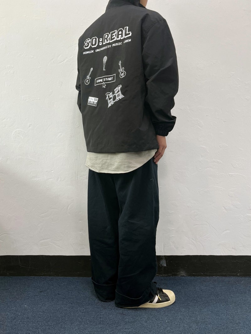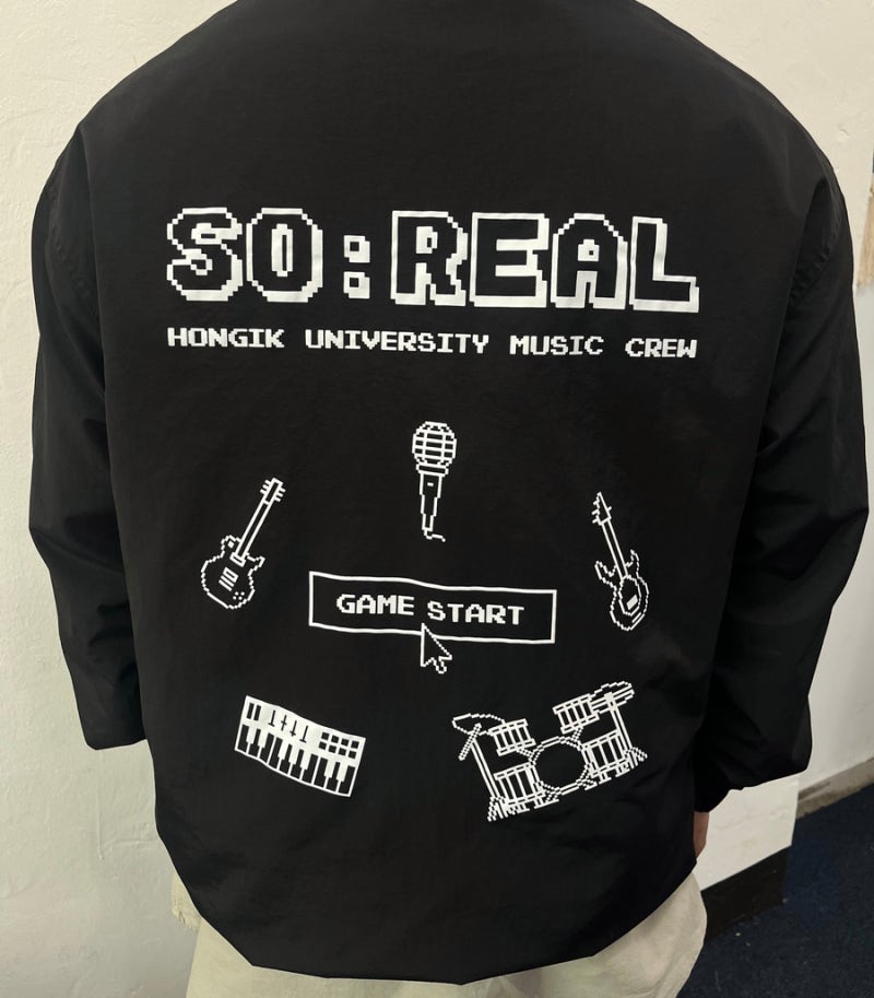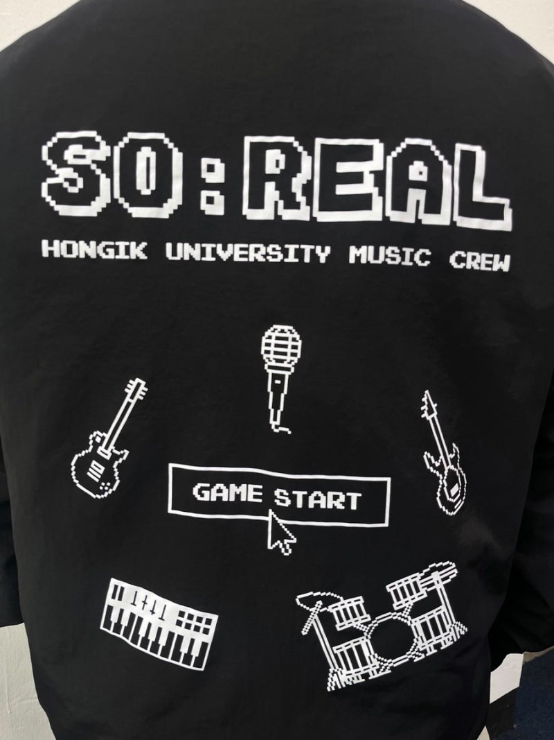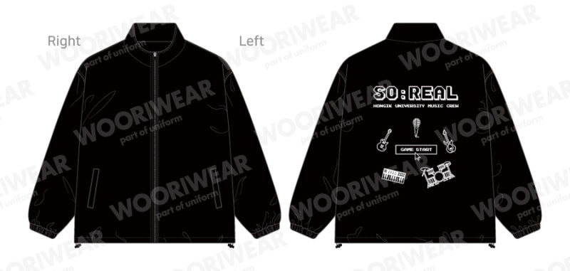 이번 홍익대학교에서는 블랙 컬러로 선택하였으며, 등판에 일반 날염(프린팅) 방식으로 로고를 새겨 단체복의 정체성을 강조했습니다.