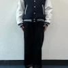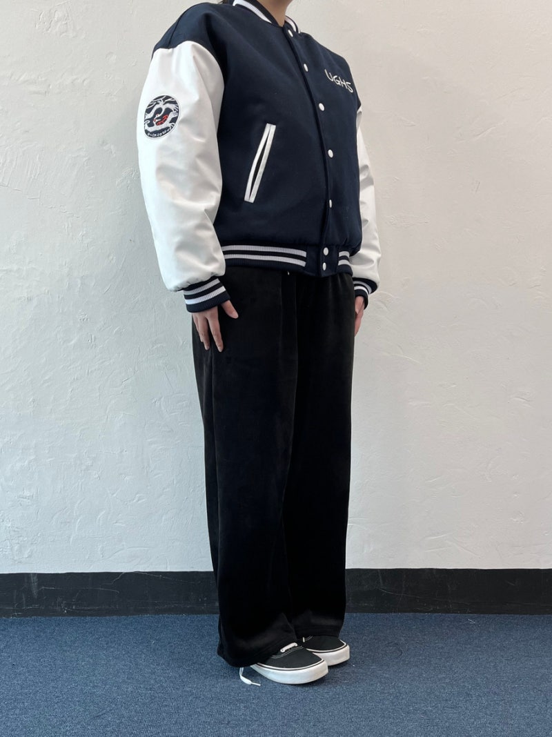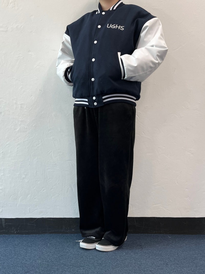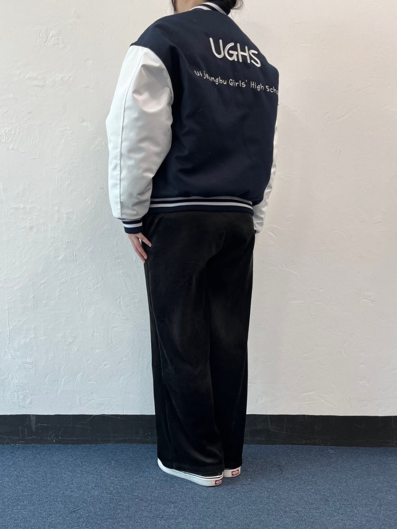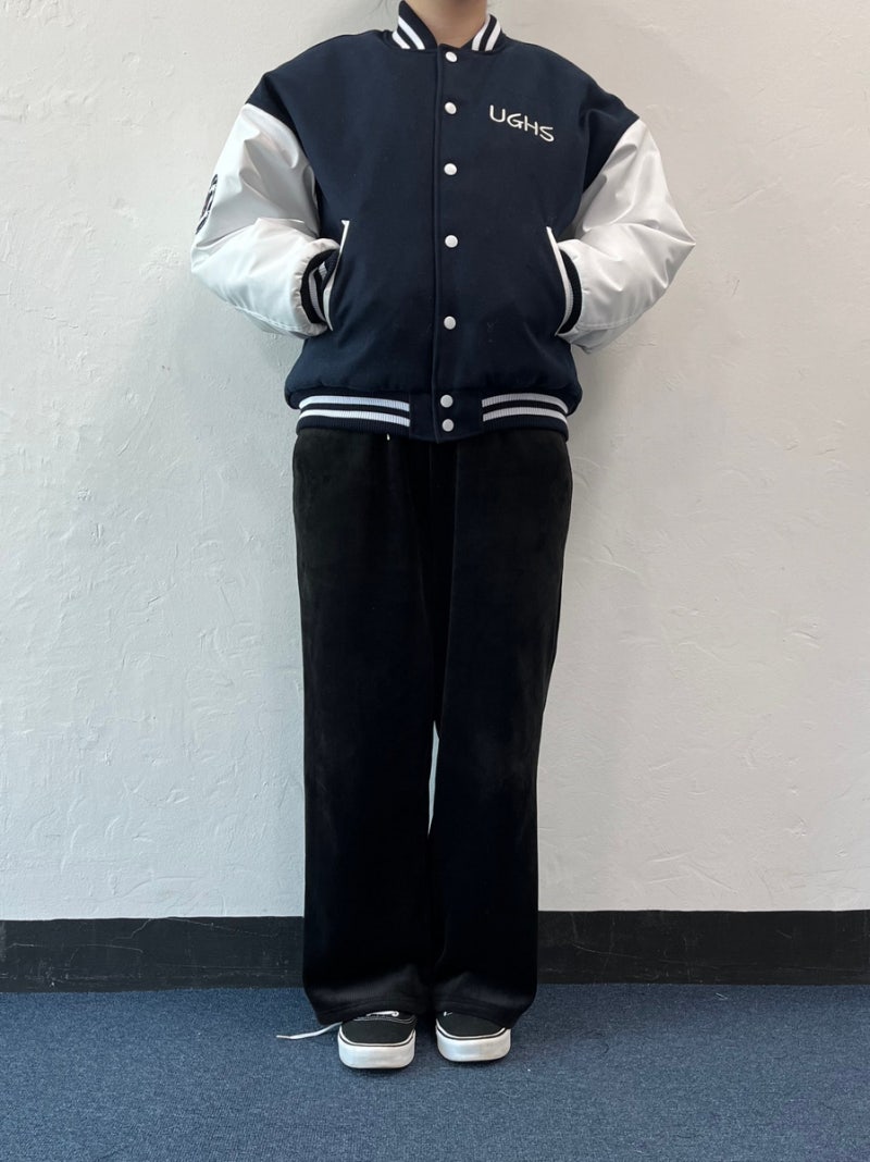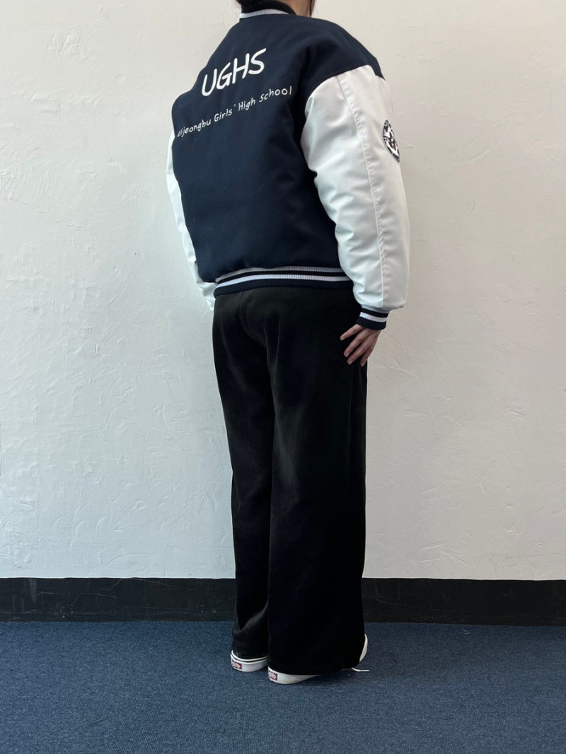 90년대 바시티룩을 모티브로 우리웨어만의 감성을 담아 재해석한 이 제품은, 일반적인 야구점퍼와 차별화된 루즈한 실루엣과 적당히 경쾌한 기장감이 특징입니다. 자연스럽게 드롭되는 숄더 라인과 여유 있는 핏은 1990년대 특유의 바시티룩 무드를 연상시키며, 다양한 스타일로 연출하기 좋은 아이템입니다.