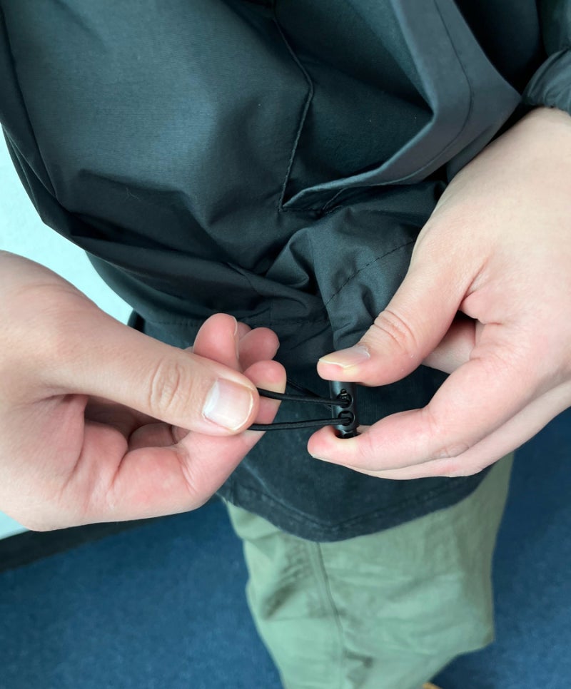 또한, 후드와 밑단에는 스트링을 적용하여 체형에 맞게 핏을 조절할 수 있으며, 후드 챙 디테일을 더해 바람을 효과적으로 차단해줍니다.