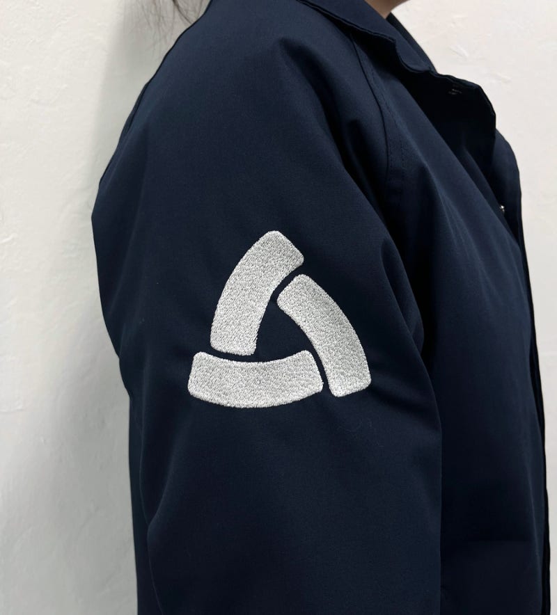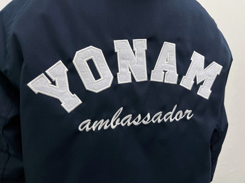 연암대학교에서는 메인 컬러로 네이비를 선택하고, 안감은 2온스 충전재 누빔 안감을 적용했습니다. 손목은 시보리 대신 밴딩을 사용해 활동성을 높였고, 왼쪽 가슴과 오른쪽 소매, 등판에 자수 방식으로 로고를 새겨 단체만의 아이덴티티를 담았습니다.
