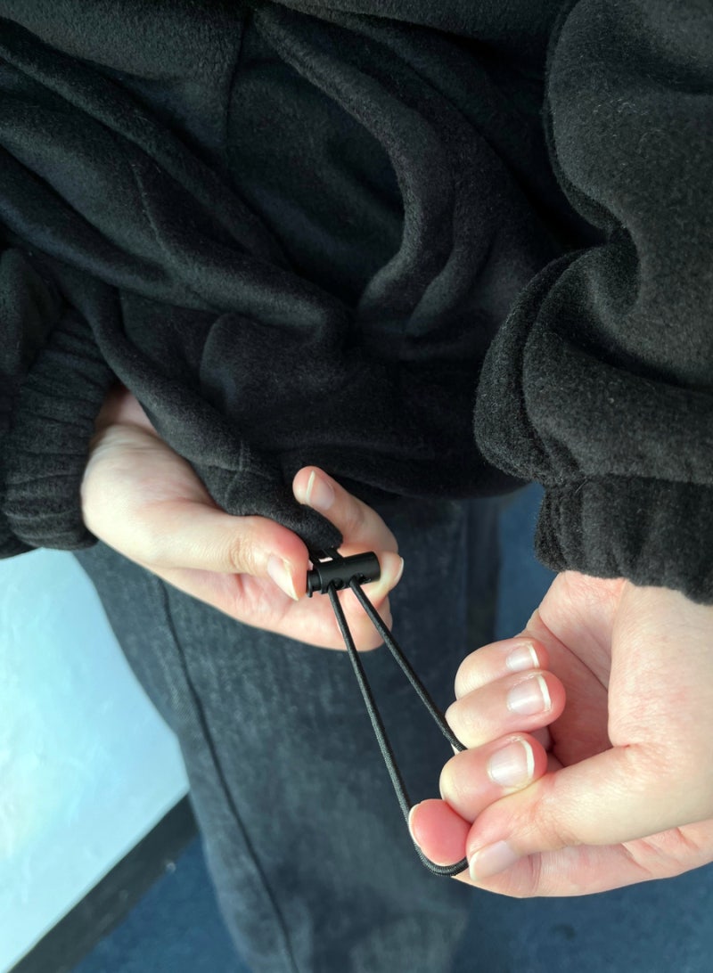 밑단 양쪽에는 스토퍼와 스트링이 있어 체형에 맞게 사이즈 조절이 가능합니다.