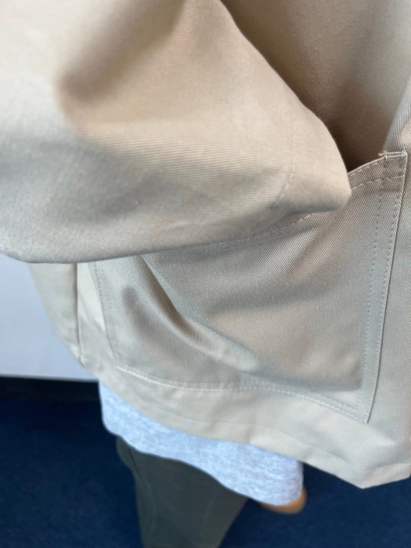 실용성 또한 놓치지 않았습니다. 전면부에는 왼쪽 가슴 포켓과 하단 양쪽 아웃포켓을 배치해 수납 기능을 강화했으며, 버튼은 고급스러운 무광 단추를 사용해 디테일까지 신경 썼습니다.