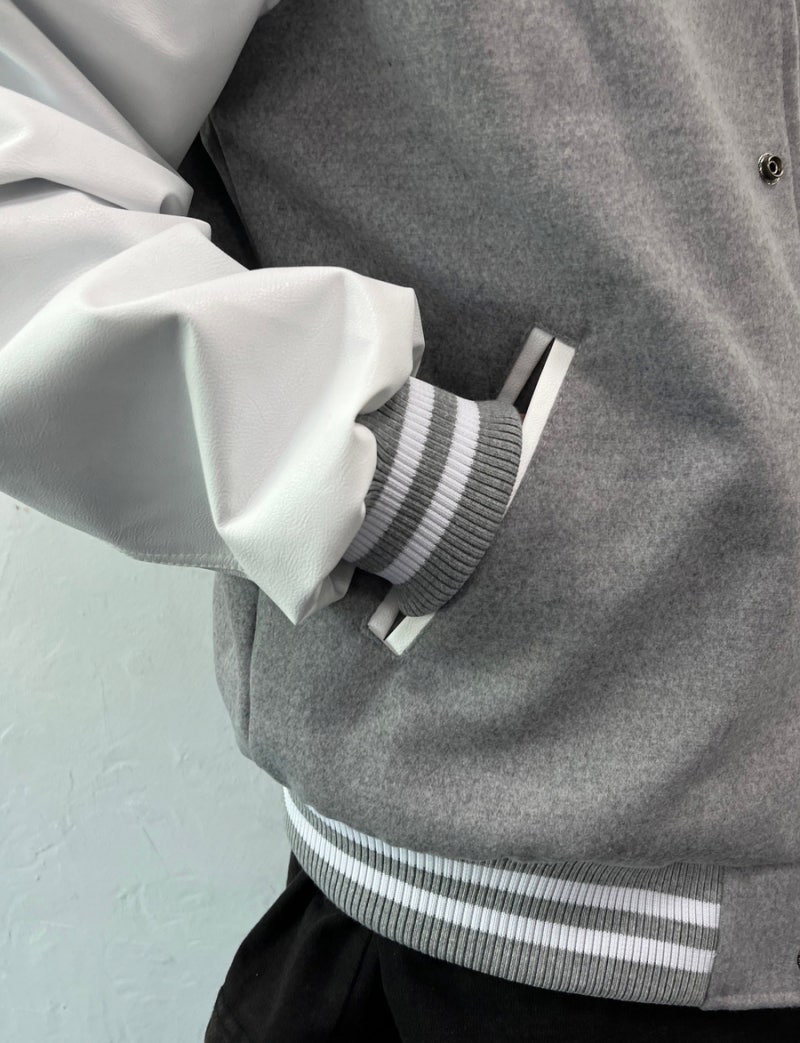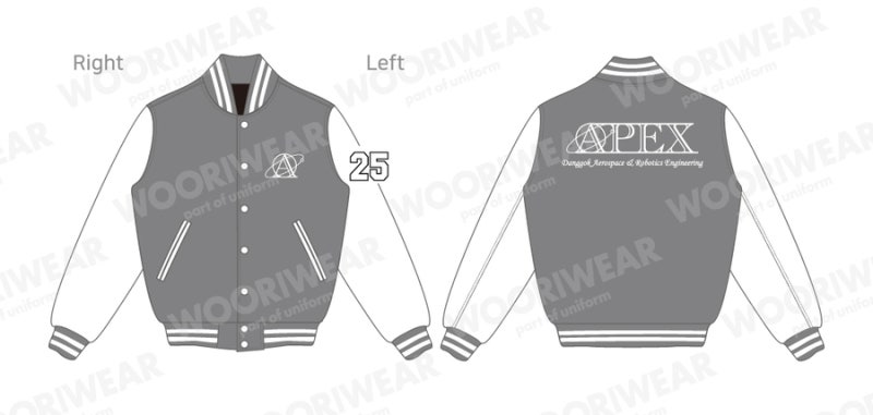 당곡고등학교에서는 하이미어 원단의 라이트그레이 컬러와 화이트 인조 가죽 소매의 조화로 세련되고 강렬한 인상을 주며, 학교의 상징색을 감각적으로 표현했습니다. 또한 왼쪽 가슴, 왼쪽 소매, 등판에는 로고를 고급 자수로 새겨 넣어 특별함을 더했습니다.