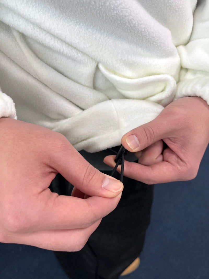 밑단 양쪽에는 스토퍼와 스트링을 넣어 체형에 맞게 자유롭게 사이즈를 조절할 수 있도록 제작했습니다.