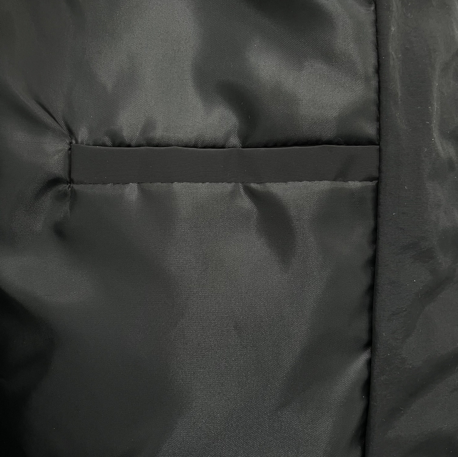하이넥 디자인을 적용해 목 부분의 보온성을 높였으며, 소매에는 탄성 있는 밴딩 처리를 더해 외부 바람이 쉽게 들어오지 않도록 설계하였습니다. 메인 지퍼는 세미 오토탭 슬라이더 지퍼를 사용하여 보다 안정적인 클로징이 가능하며, 내부에는 안주머니를 추가해 실용성을 극대화했습니다.
