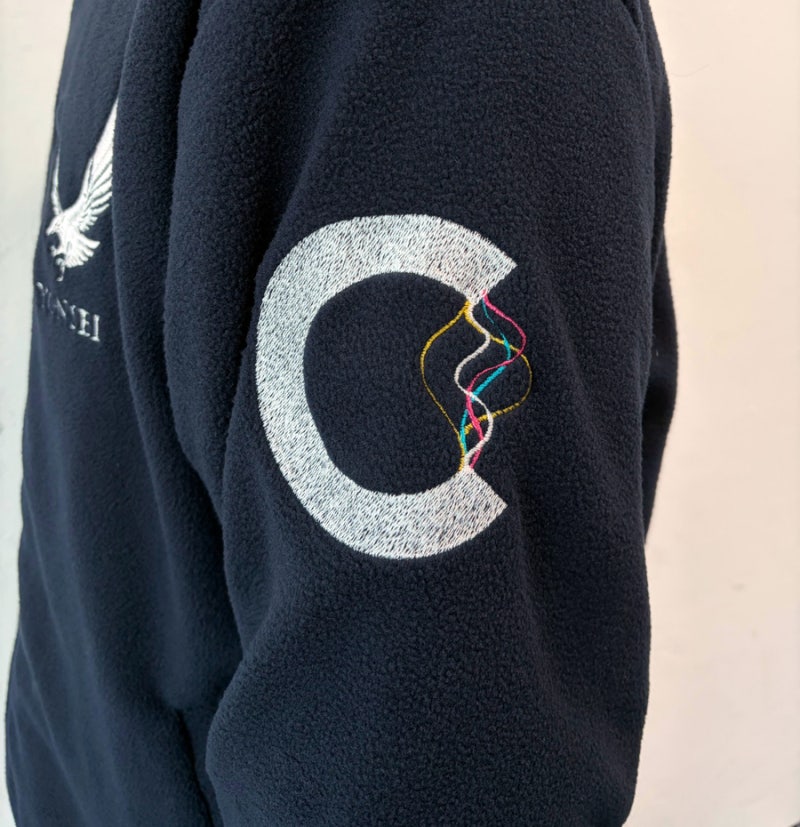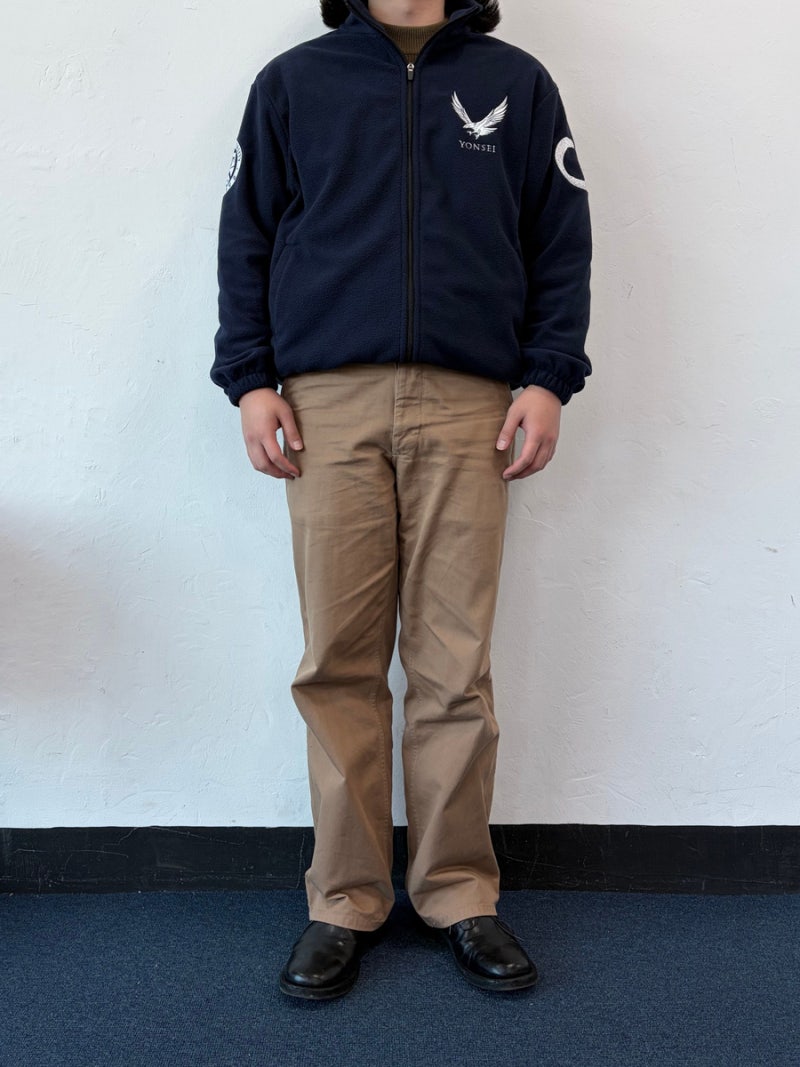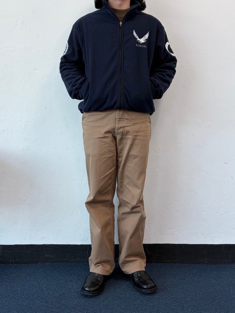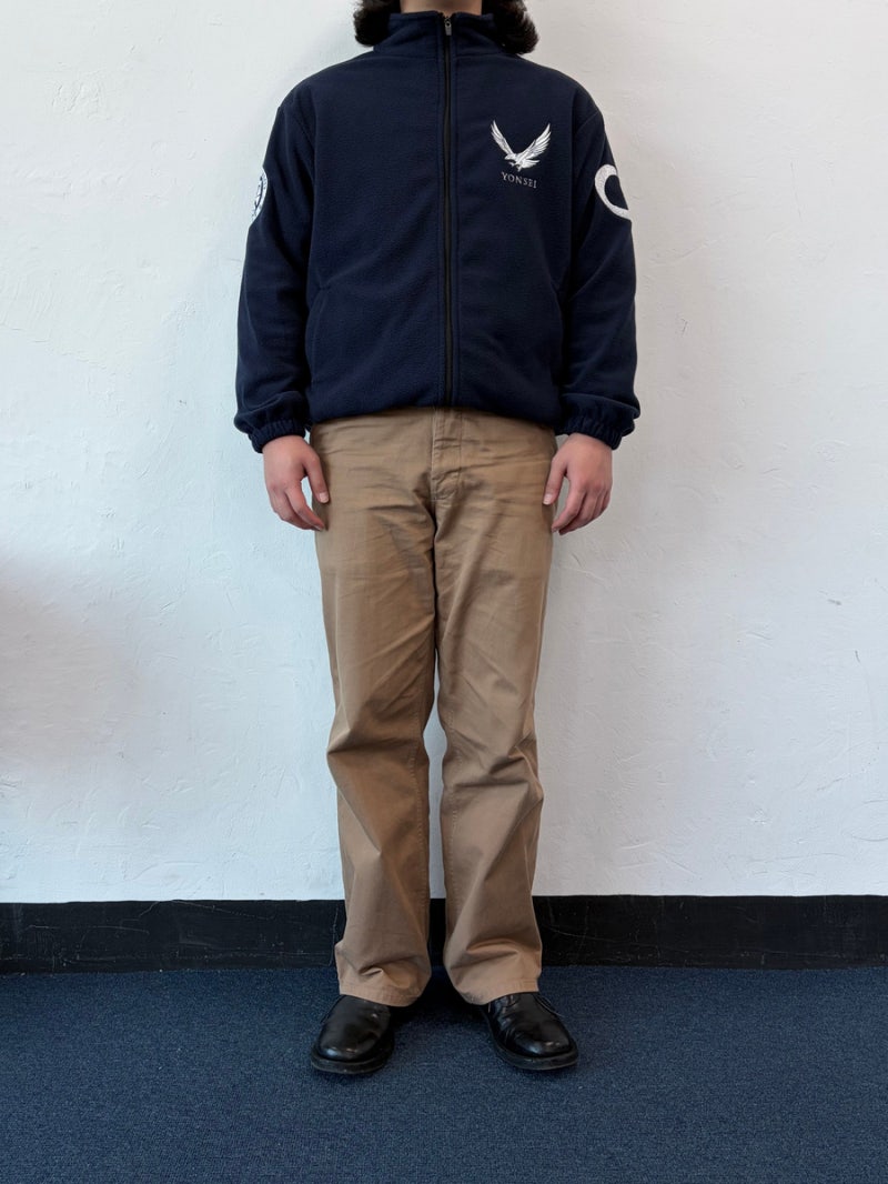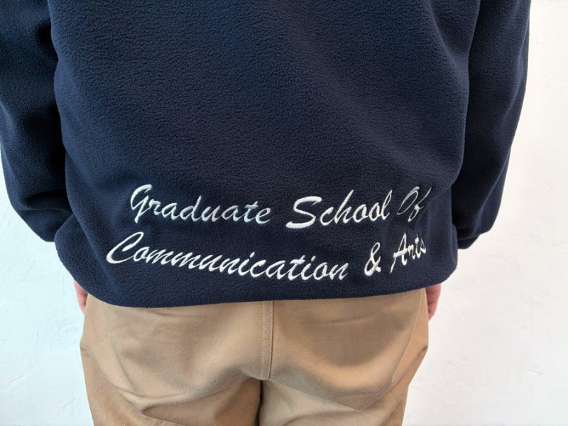 연세대학교에서는 원단 컬러를 네이비로 선택하고, 왼쪽 가슴과 양쪽 소매, 등판에는 로고 자수를 새겨 차별화된 디자인을 완성했습니다.