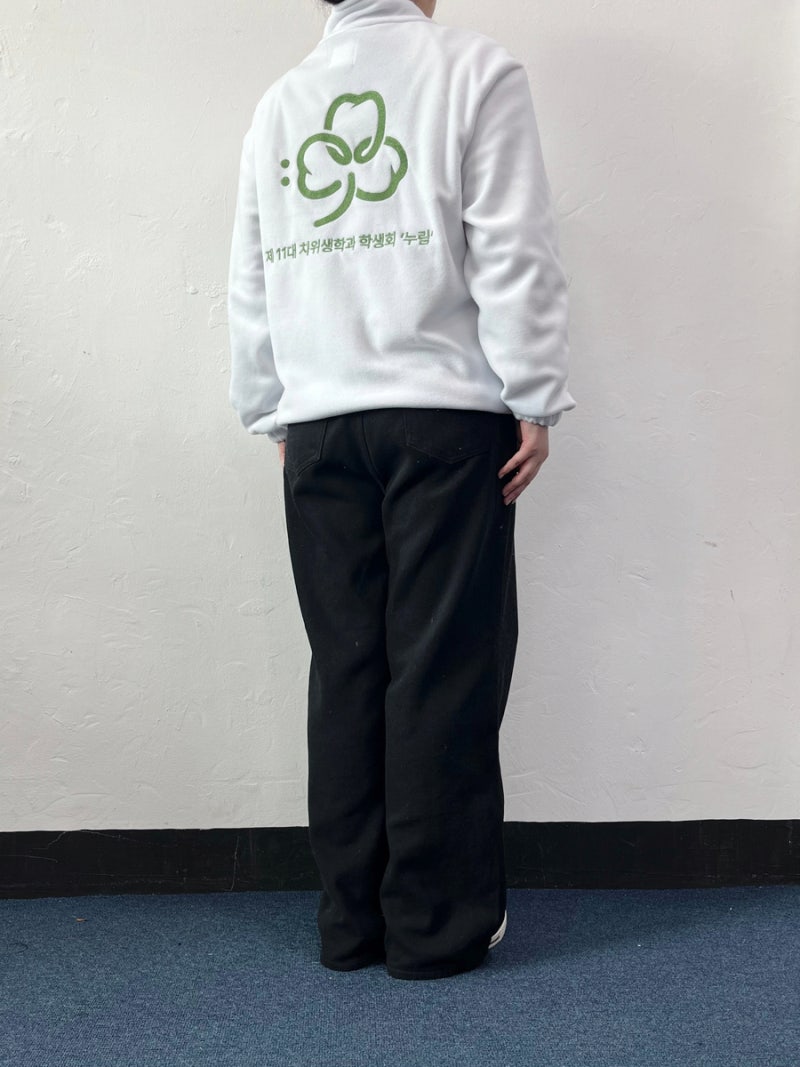 이번에 단국대학교에서는 화이트 컬러를 선택했으며, 등판에 자수 로고 작업을 통해 고급스럽고 완성도 높은 디자인을 완성했습니다.