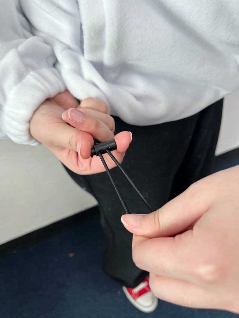 밑단 양쪽에는 스토퍼와 스트링이 있어 체형에 맞게 사이즈 조절이 가능합니다.