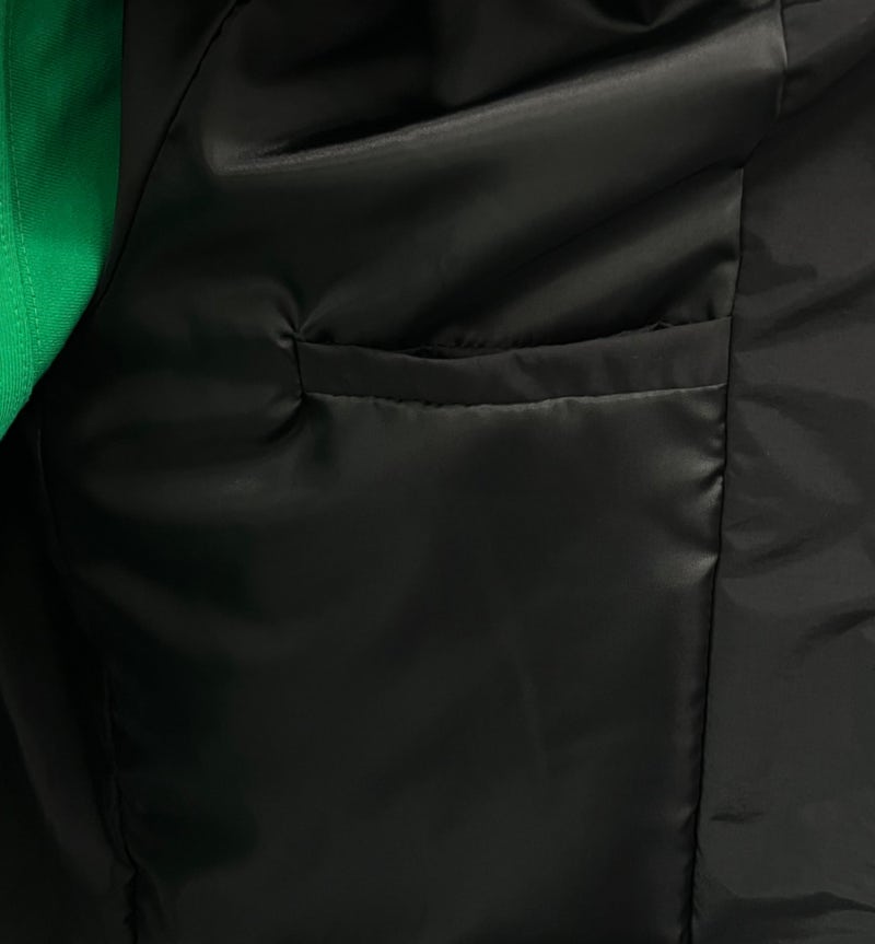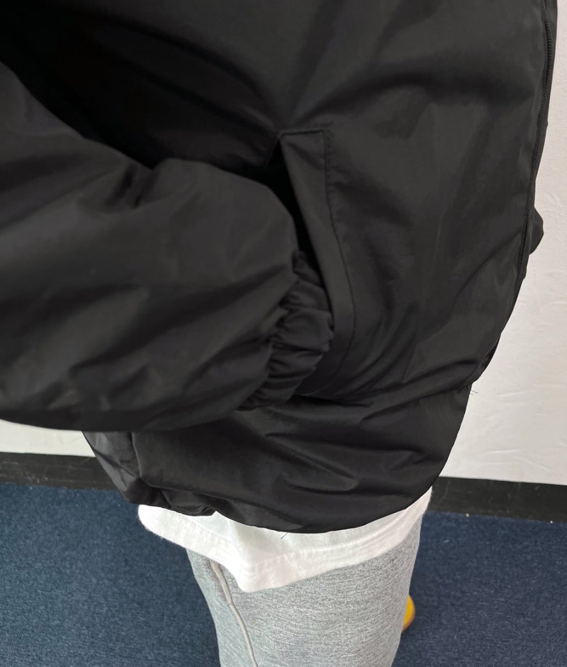 하이넥 디자인을 적용해 목 부분의 보온성을 높였으며, 소매에는 탄성 있는 밴딩 처리를 더해 외부 바람이 쉽게 들어오지 않도록 설계하였습니다. 메인 지퍼는 세미 오토탭 슬라이더 지퍼를 사용하여 보다 안정적인 클로징이 가능하며, 내부에는 안주머니를 추가해 실용성을 극대화했습니다.