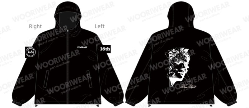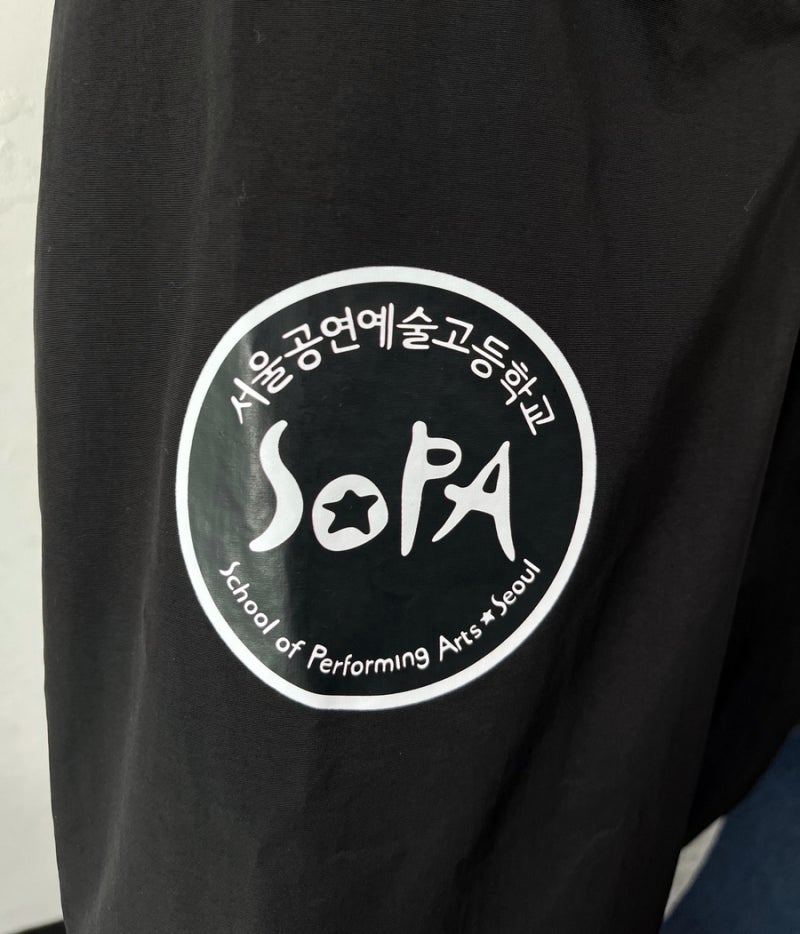 서울공연예술고등학교에서는 블랙 컬러를 선택하였으며, 왼쪽 가슴과 양쪽 소매, 등판에는 열전사 인쇄(DTF) 프린팅 방식으로 로고를 새겨 개성을 더했습니다.