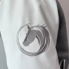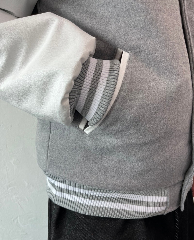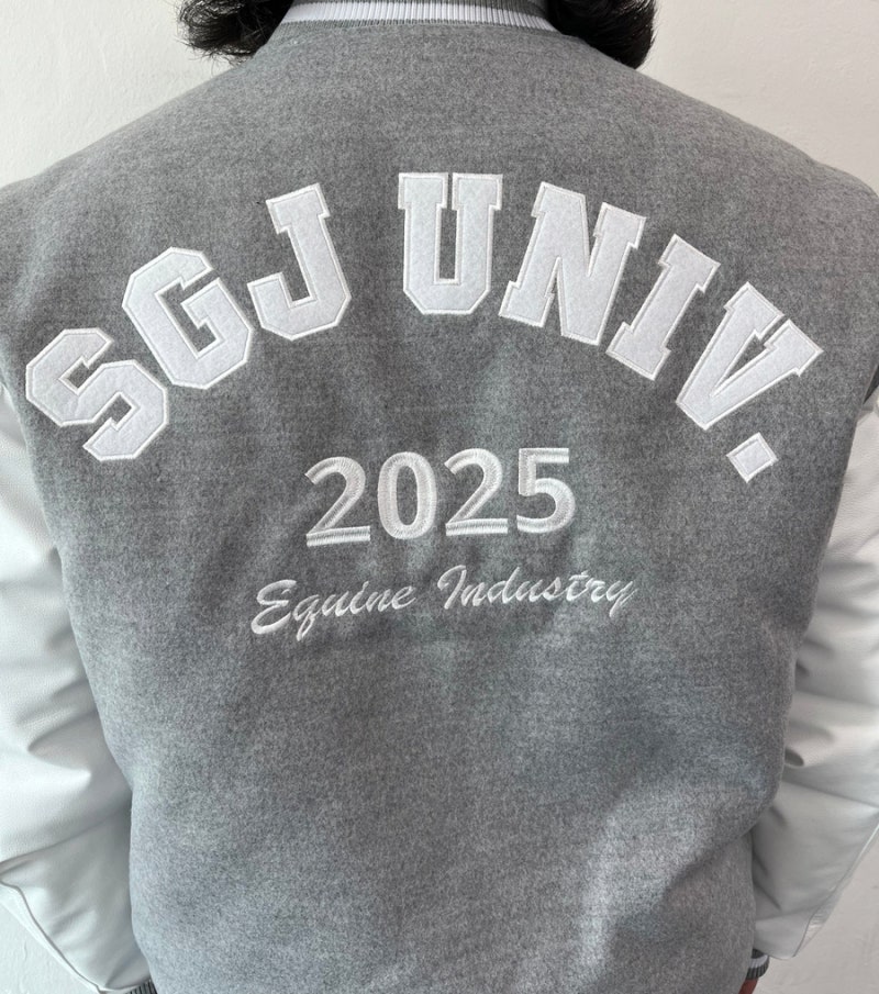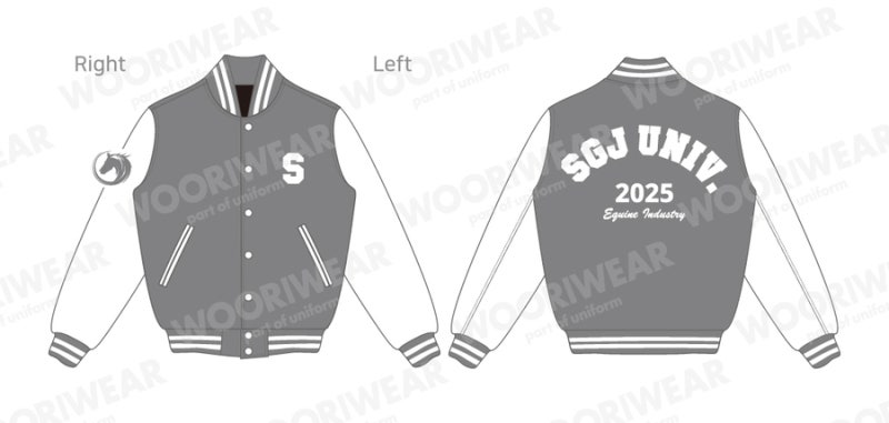 신경주대학교에서는 하이미어 원단의 라이트그레이 컬러와 화이트 인조 가죽 소매의 조화로 세련되고 강렬한 인상을 주며, 학교의 상징색을 감각적으로 표현했습니다. 또한 왼쪽 가슴, 오른쪽 소매, 등판에는 로고를 고급 자수로 새겨 넣어 특별함을 더했습니다.