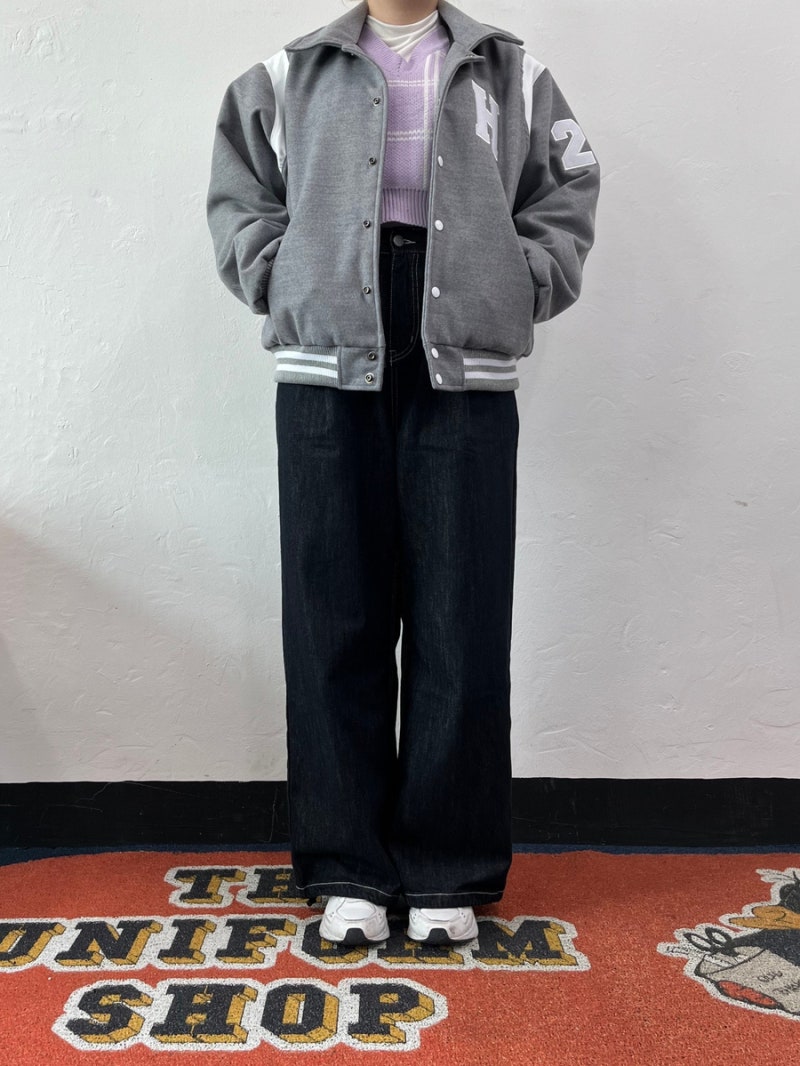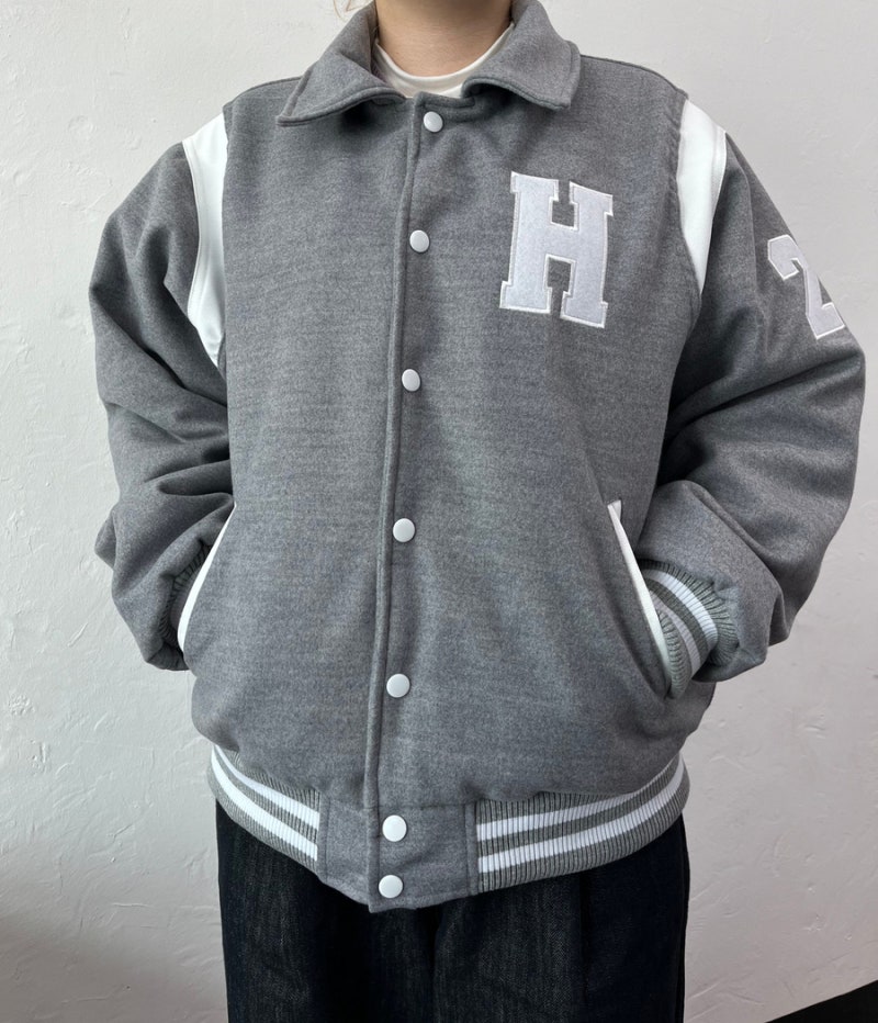 전체적인 룩에 포인트를 주며, 카라 디자인은 일반적인 바시티 자켓과 차별화된 매력을 더해줍니다.
