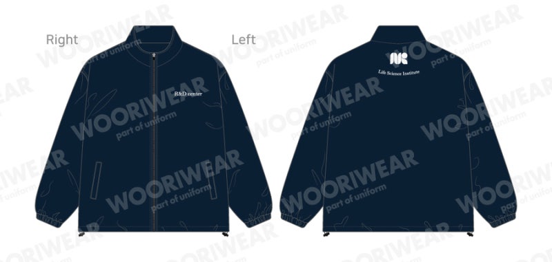 이번 노바렉스에서는 네이비 컬러로 선택하였으며, 왼쪽 가슴과 등판에 자수 방식으로 로고를 새겨 단체복의 정체성을 강조했습니다.