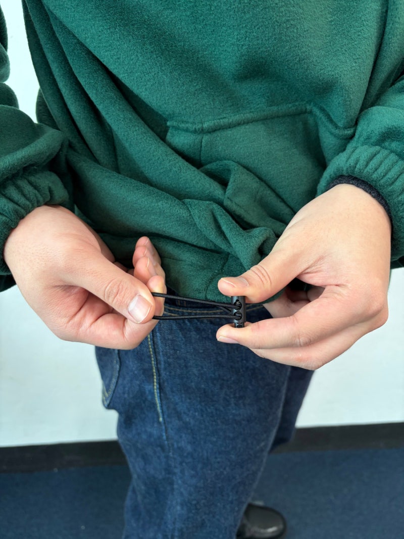 밑단 양쪽에는 스토퍼와 스트링 디테일이 있어 체형과 스타일에 맞게 핏을 조절할 수 있습니다.