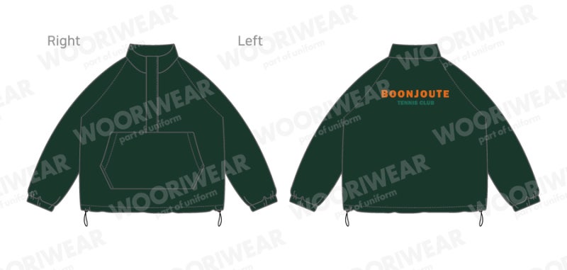 전면부에는 넥 라인부터 포켓까지 이어지는 히든 지퍼 디테일을 적용해 전체 인상이 깔끔하고 세련되며, 밑단에는 사이드 스트링 디테일을 더해 체형과 스타일에 맞게 실루엣을 정리할 수 있어 활용도가 높습니다. 단체복은 누구나 부담 없이 입을 수 있어야 하는 만큼, 이런 조절 디테일이 만족도를 높여주는 포인트가 됩니다.