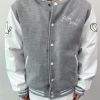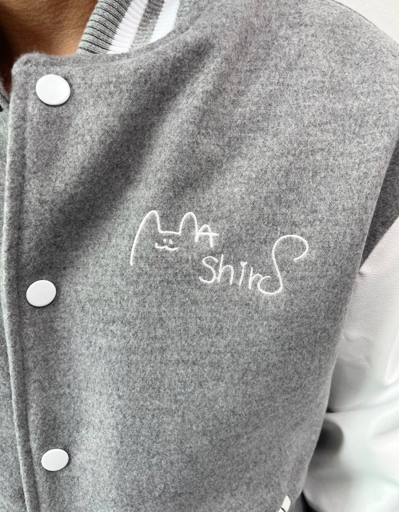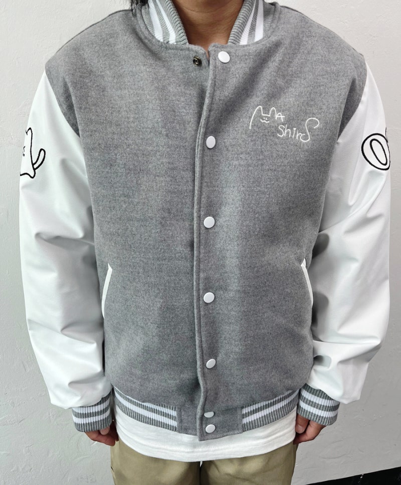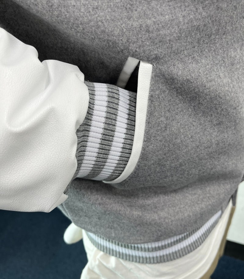 마로에서는 하이미어 원단의 라이트그레이 컬러와 화이트 인조 가죽 소매 조합으로 세련되면서도 또렷한 인상을 완성했습니다. 로고는 왼쪽 가슴, 양쪽 소매, 등판에 고급 자수로 작업해 입체감과 완성도를 더했으며, 자수 특유의 선명한 표현력과 내구성 덕분에 착용과 관리가 반복되는 과잠/단체복 환경에서도 깔끔하게 유지되기 좋습니다.
