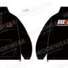 쎈짐에서는 가장 많이 선택되는 블랙 컬러로 진행했으며, 로고는 왼쪽 가슴과 등판에 열전사 인쇄(DTF) 프린팅 방식으로 작업해 선명하게 표현했습니다. DTF는 디테일 표현이 깔끔하고 단체 로고가 또렷하게 보이는 장점이 있어, 단체복의 정체성과 완성도를 높이기에 잘 어울리는 방식입니다.