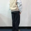 특히 자연스럽게 드롭되는 숄더 라인과 여유 있는 핏이 90년대 바시티룩 특유의 무드를 살려줘