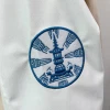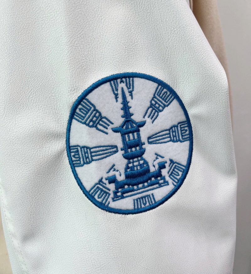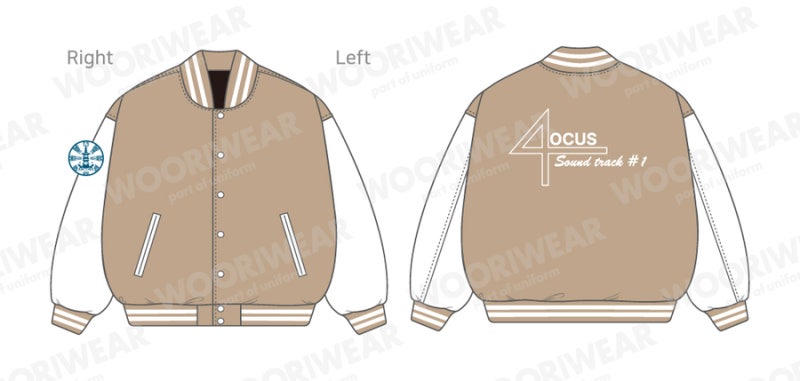 청담고등학교에서는 하이미어 원단 라이트베이지 컬러와 인조 가죽 화이트 조합으로 클래식한 바시티 스타일을 완성했습니다. 로고는 오른쪽 소매와 등판에 자수 방식으로 작업해 입체감 있게 표현했으며, 착용과 관리가 반복되는 환경에서도 깔끔하게 유지될 수 있도록 내구성을 고려해 청담고등학교만의 아이덴티티를 강조했습니다.
